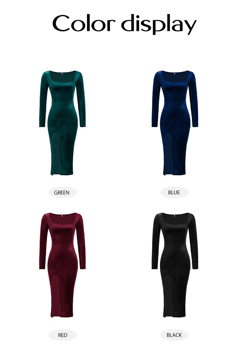 迪芸欧美跨境外贸女装亚马逊2024秋冬纯欲性感纯色u领开叉连衣裙