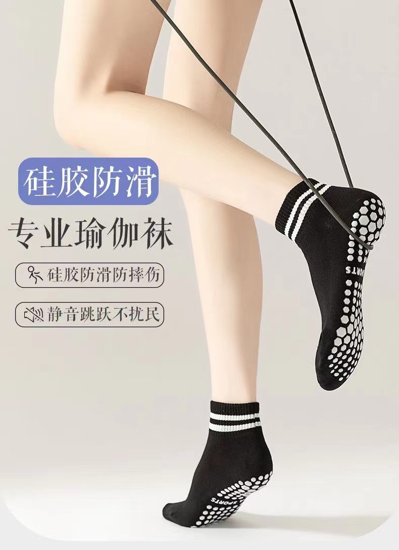 瑜伽袜子防滑地板袜不起球运动点胶专业舞蹈健身普拉提地板袜批发