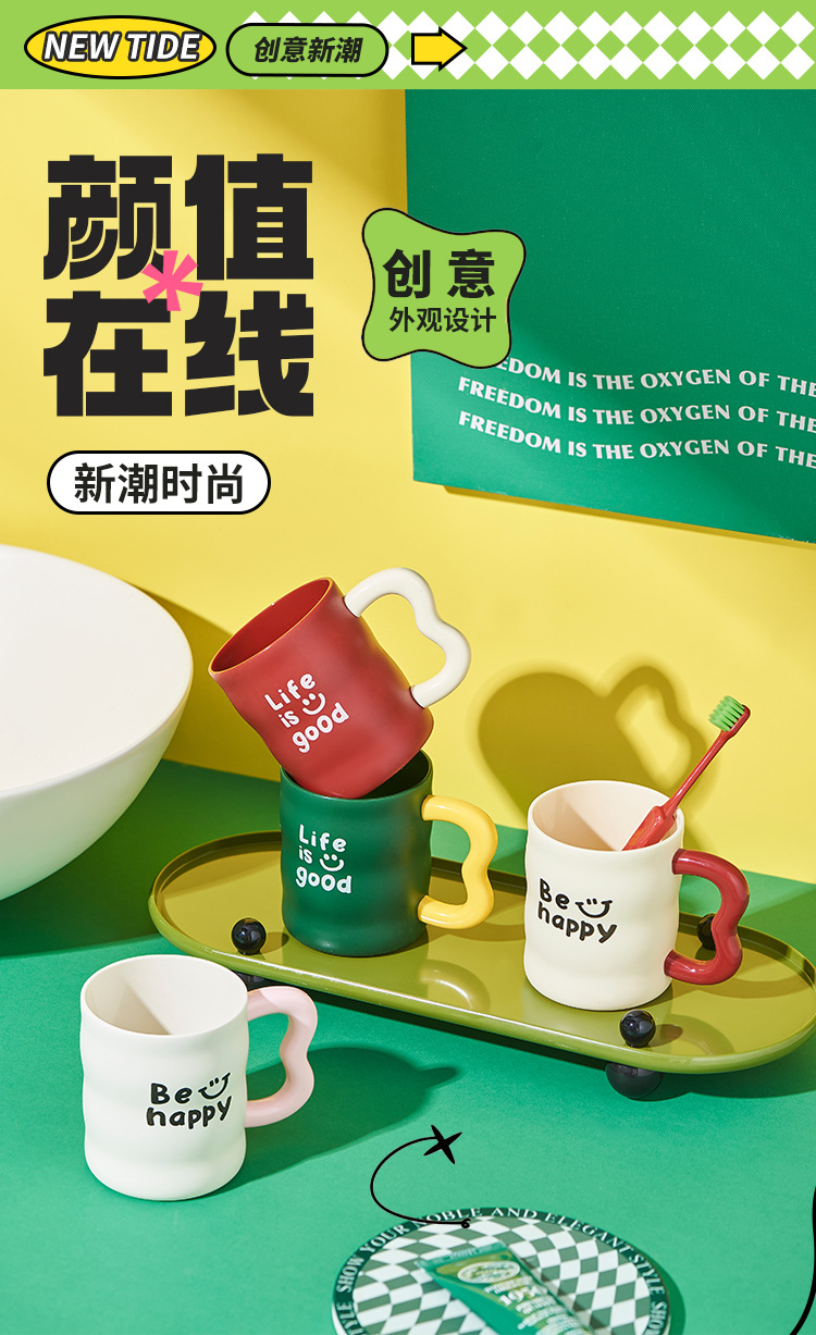 跨境新潮英文漱口杯大容量可爱字母塑料杯刷牙杯塑料加厚洗漱杯