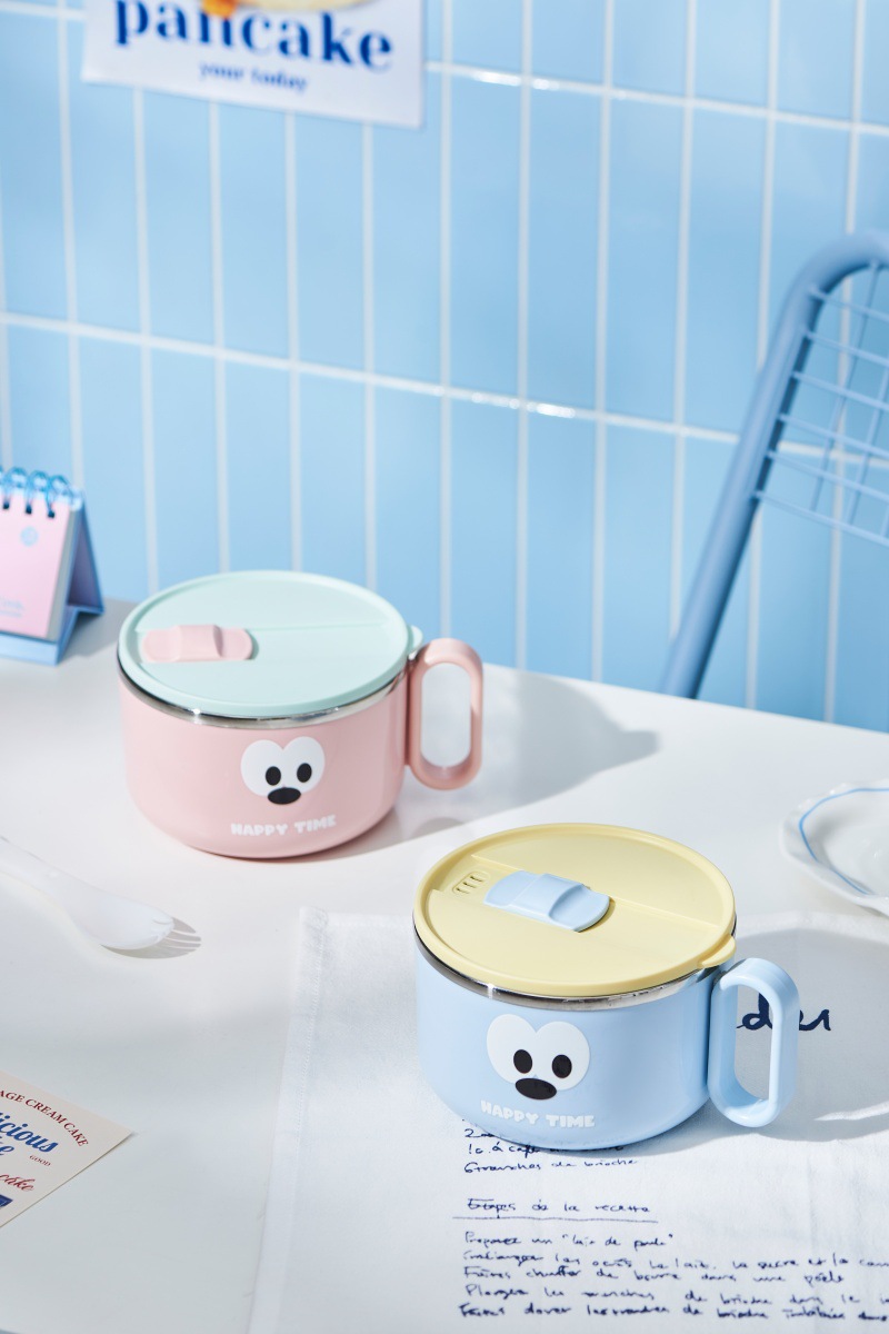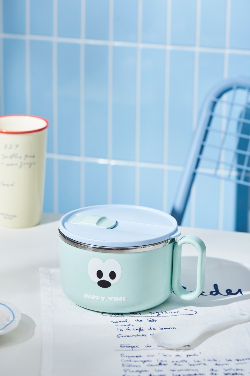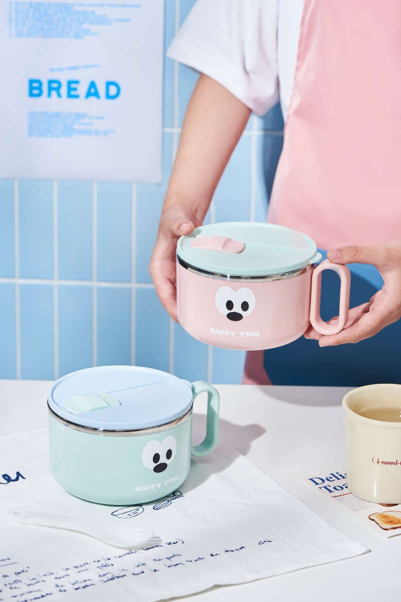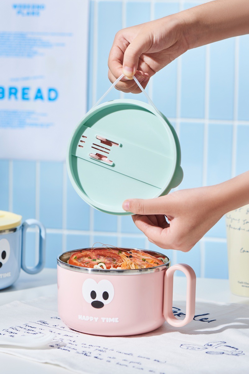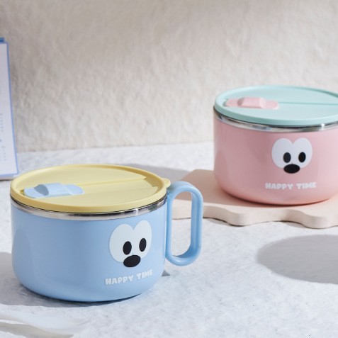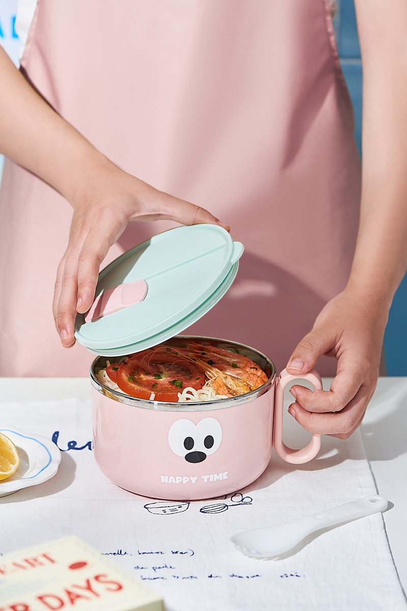 夜宵碗大眼仔泡面碗不锈钢带盖便当盒卡通大容量饭盒水果切收纳盒