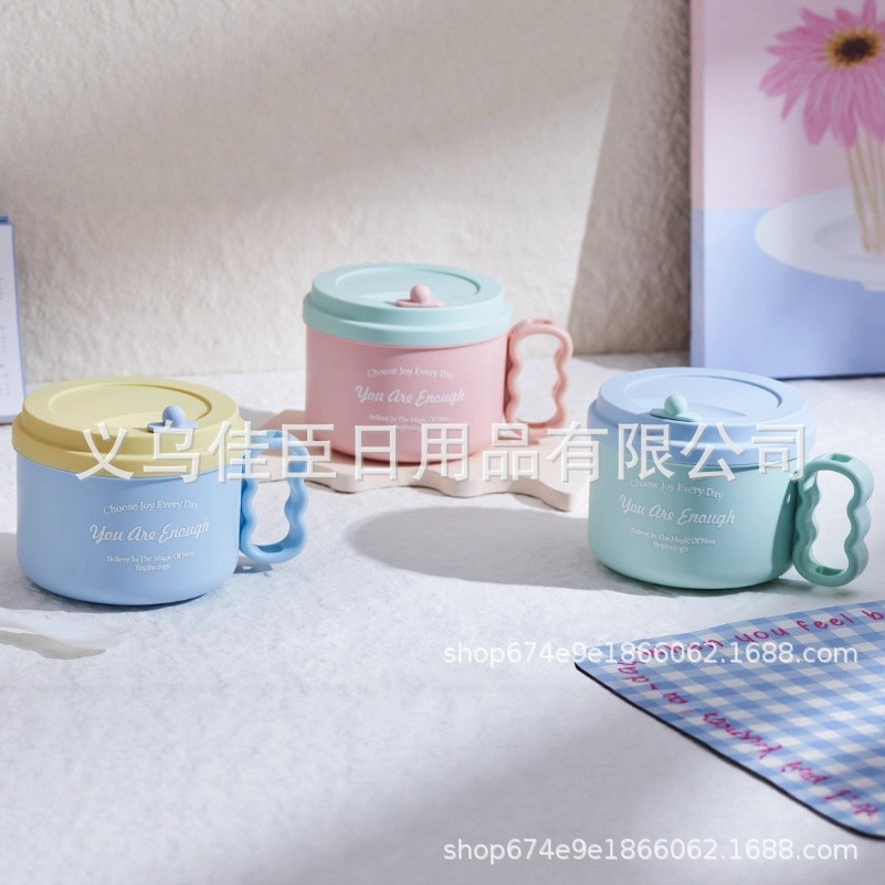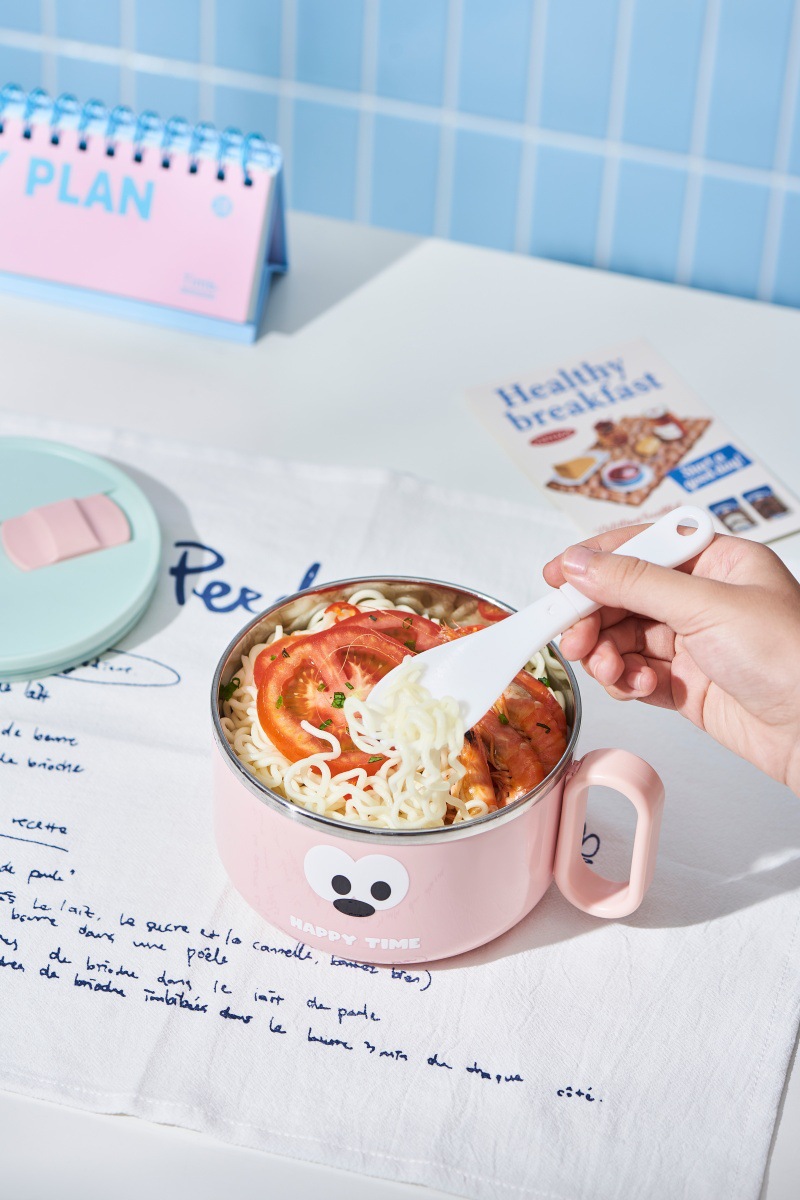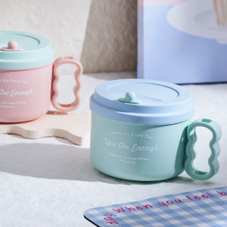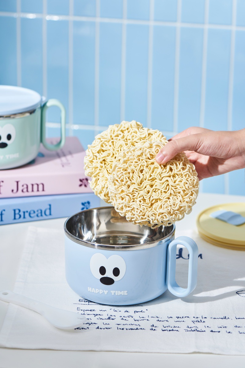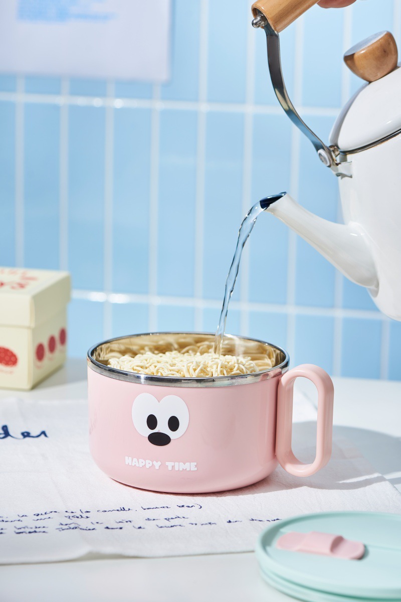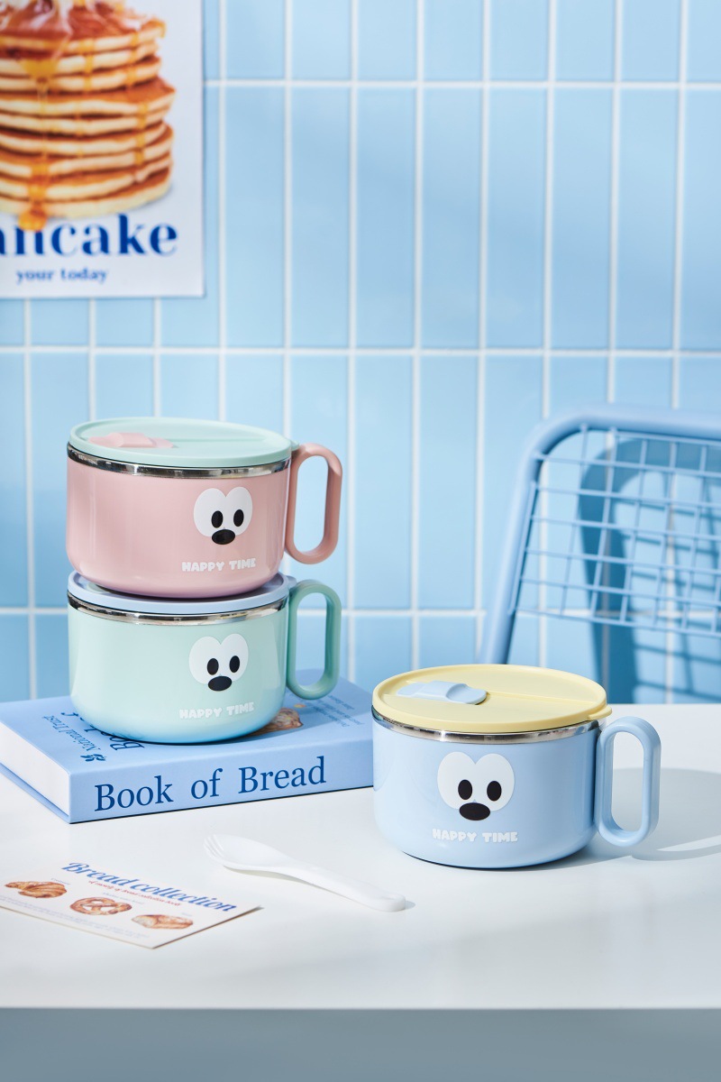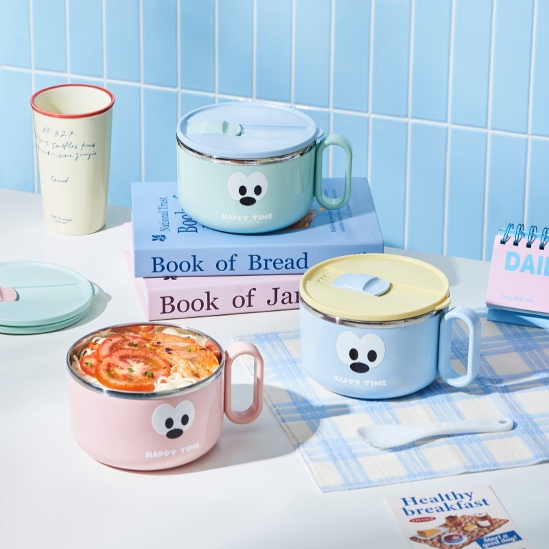 夜宵碗大眼仔泡面碗不锈钢带盖便当盒卡通大容量饭盒水果切收纳盒