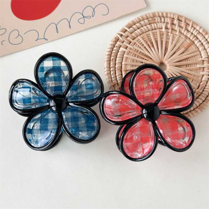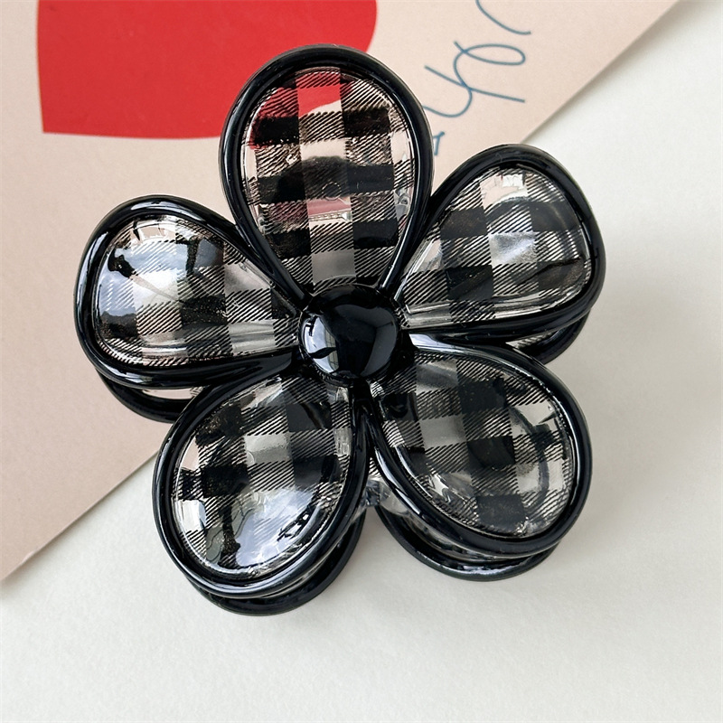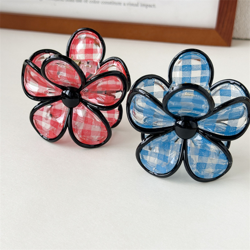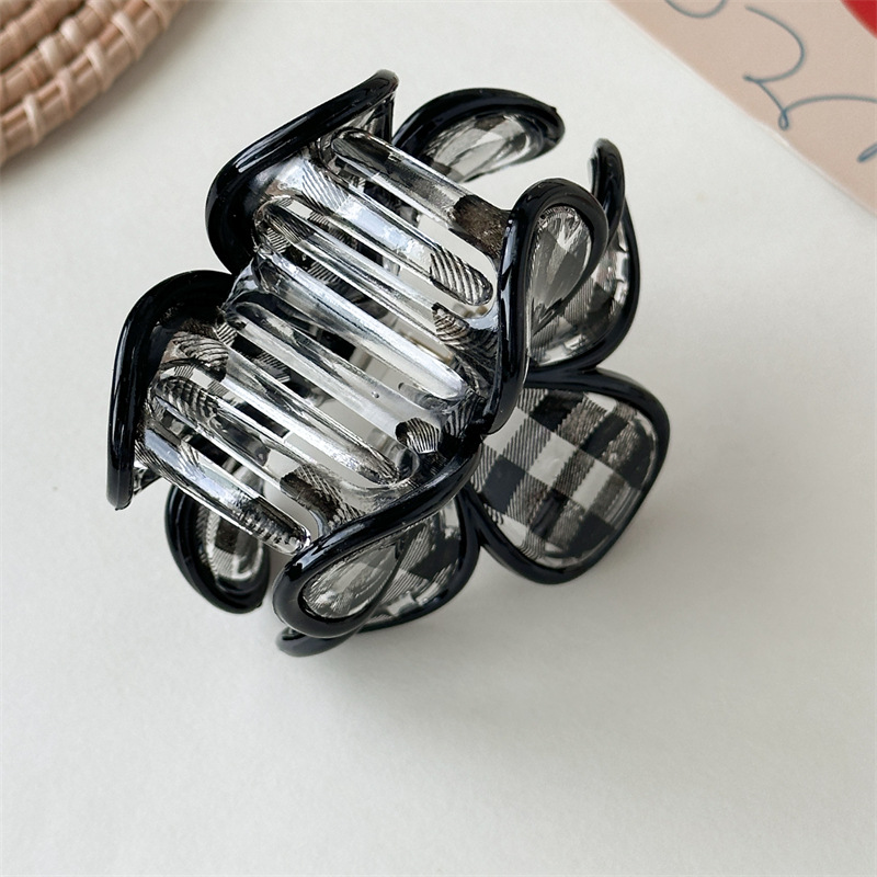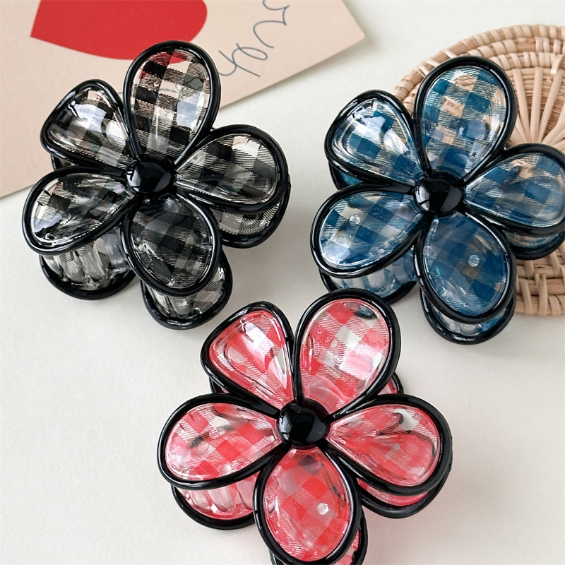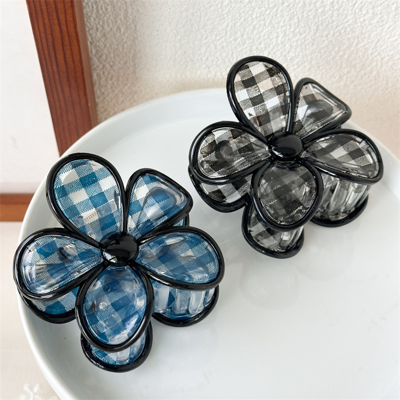格纹花朵抓夹后脑勺高级感盘发鲨鱼夹气质甜美发抓马尾夹头饰品