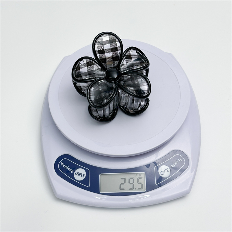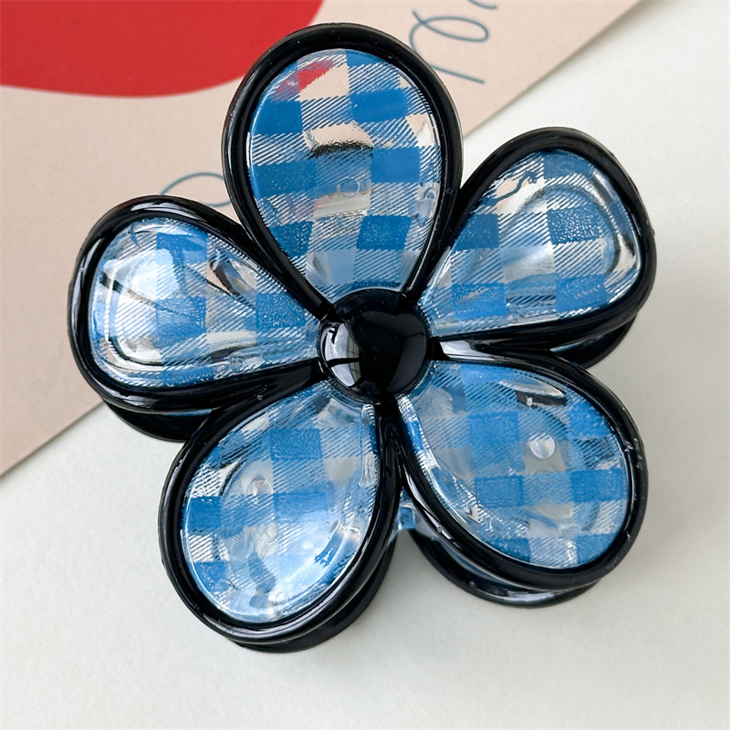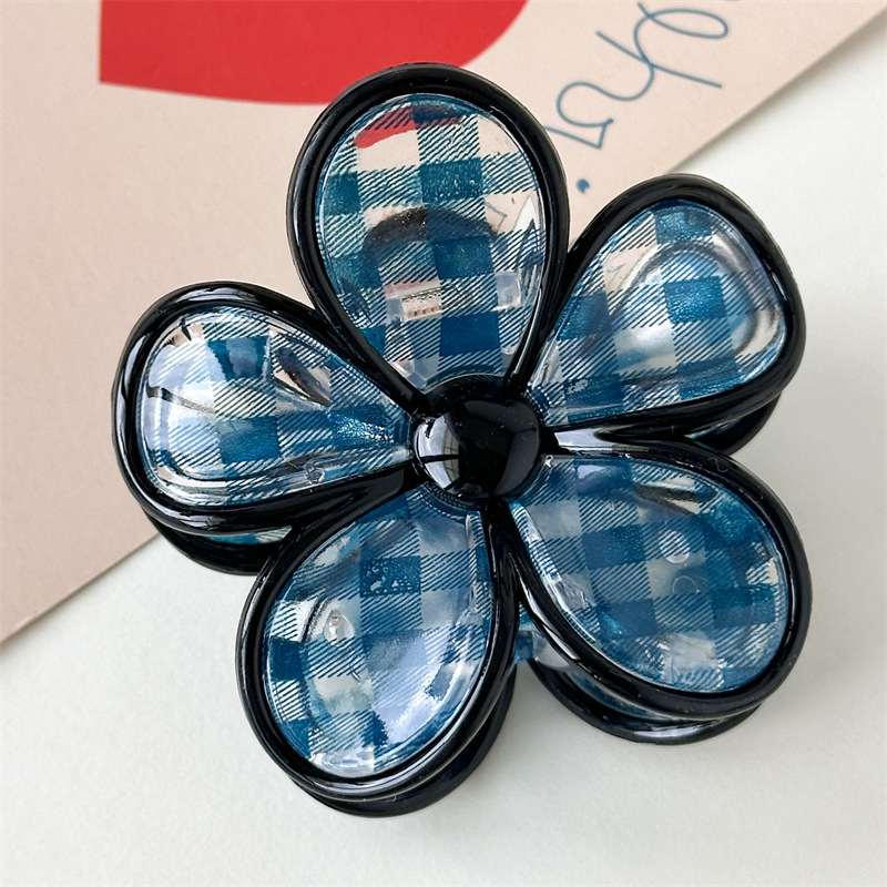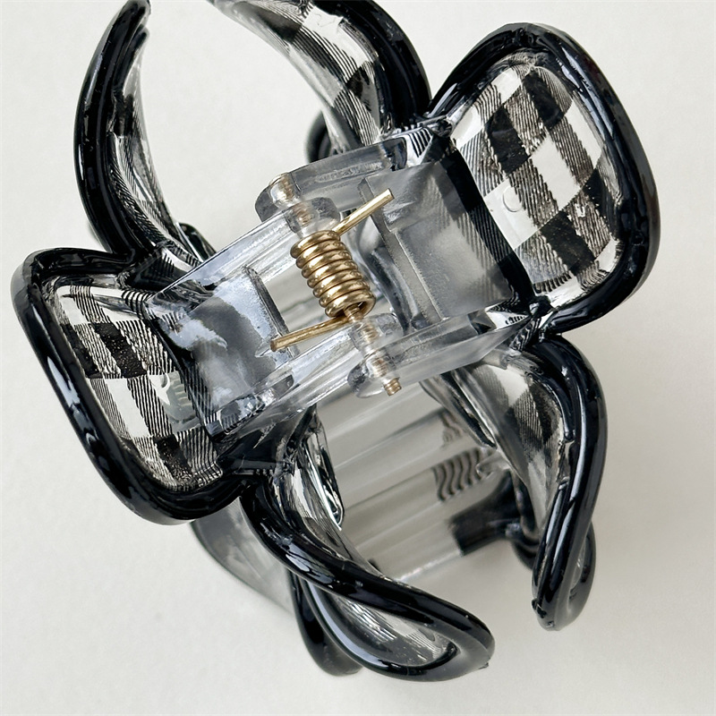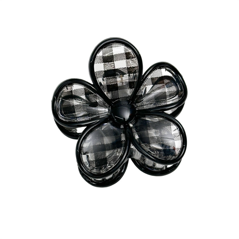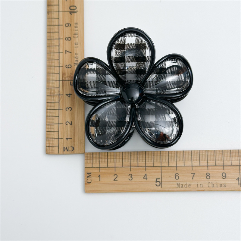 格纹花朵抓夹后脑勺高级感盘发鲨鱼夹气质甜美发抓马尾夹头饰品