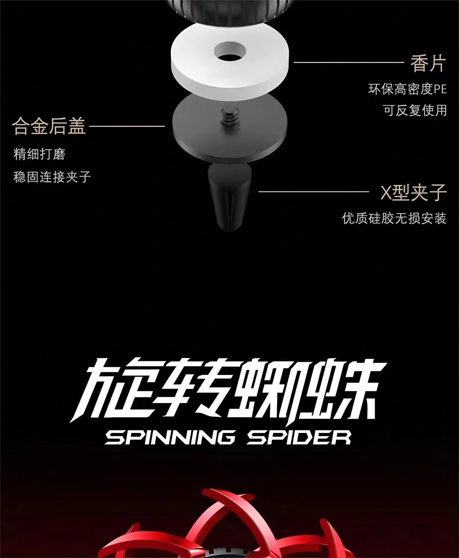 车载香薰出风口摆件旋转雪花蜘蛛形车内饰品空调风口创意旋转香薰