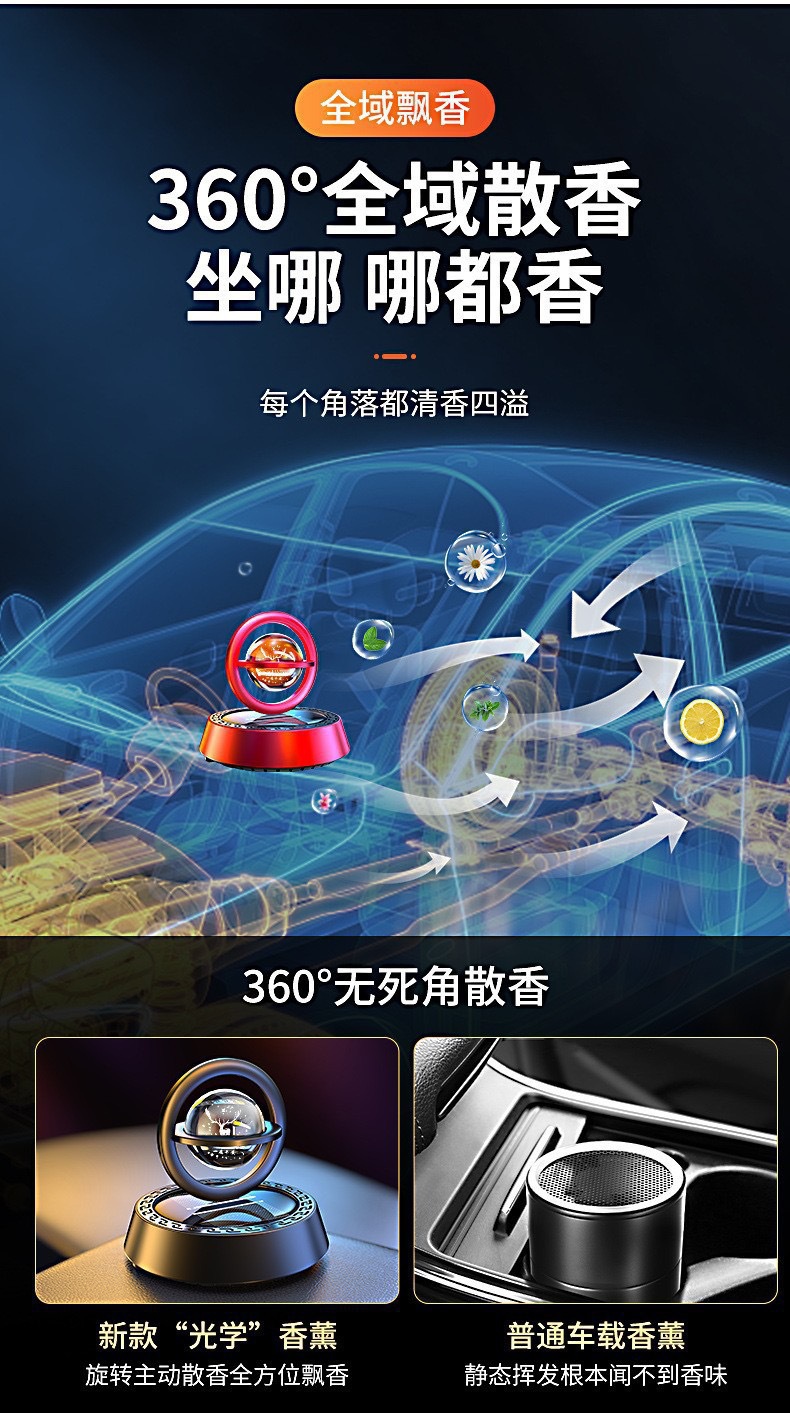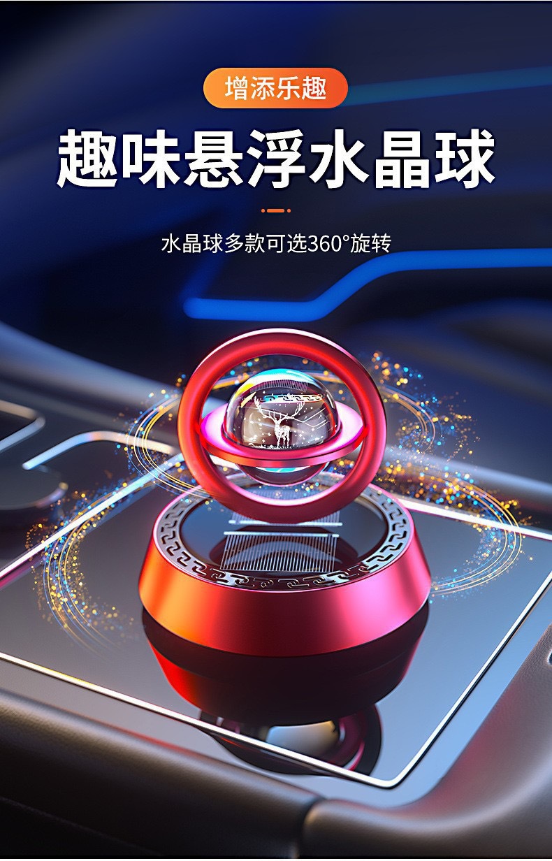 车载太阳能香薰新款汽车太阳能悬浮水晶固体香水创意车载摆件清香