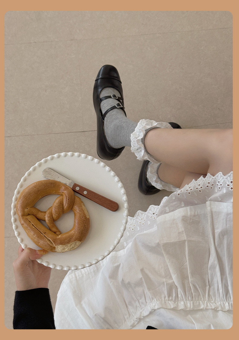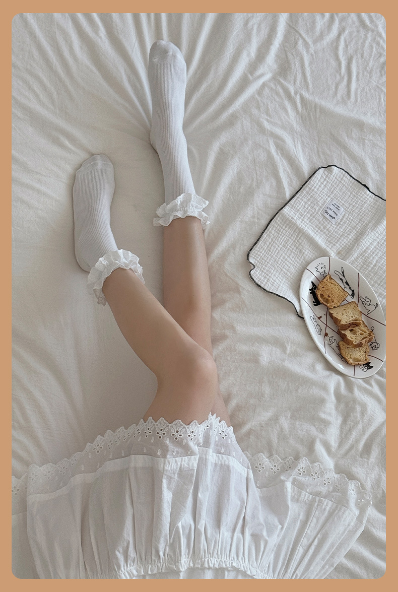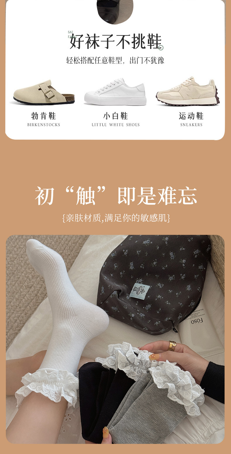 蕾丝花边袜子女秋季新款纯色中筒袜甜美洛丽塔袜子jk堆堆袜女
