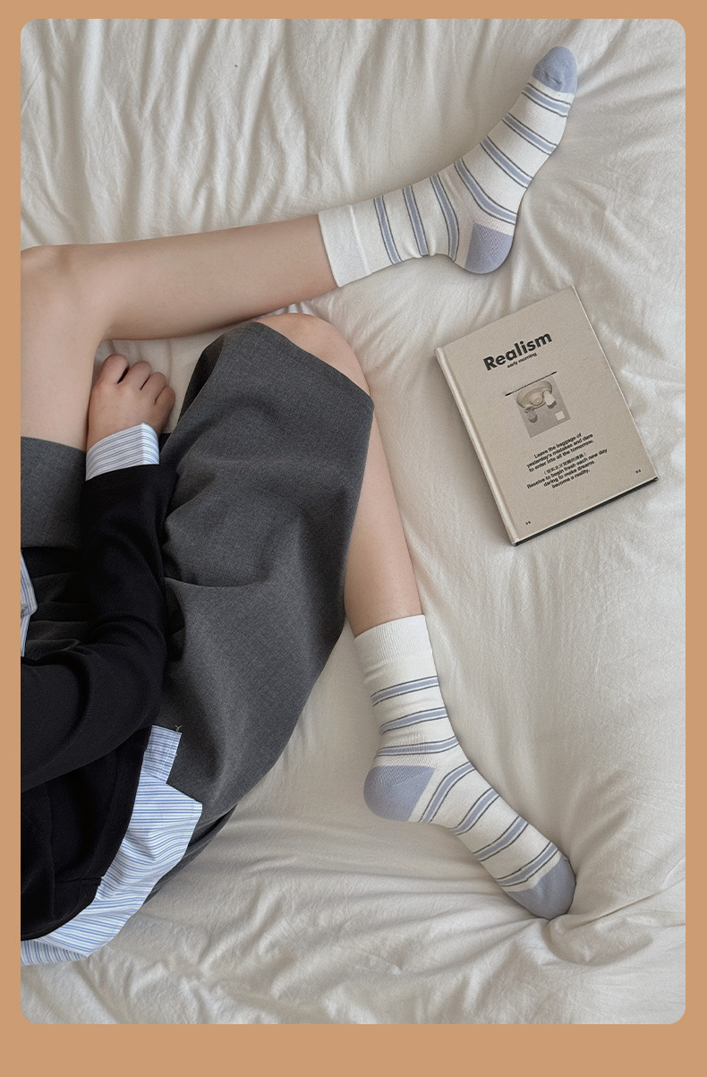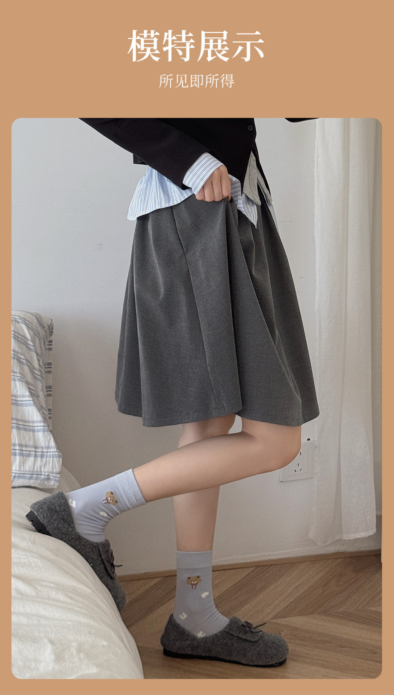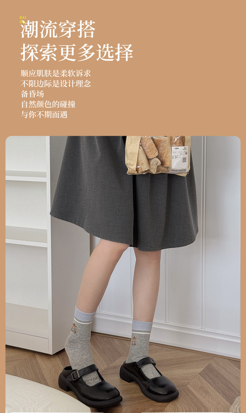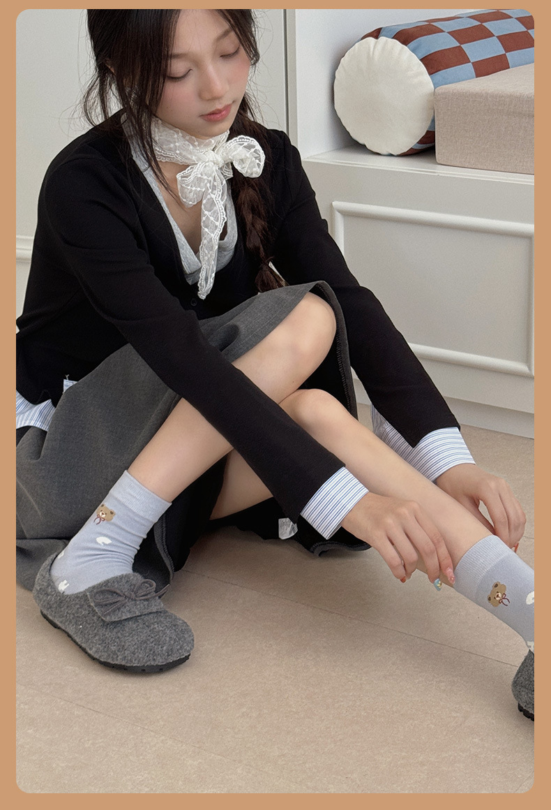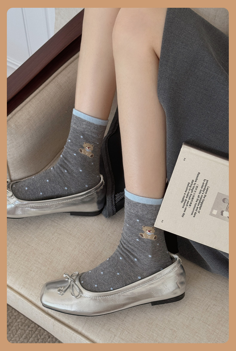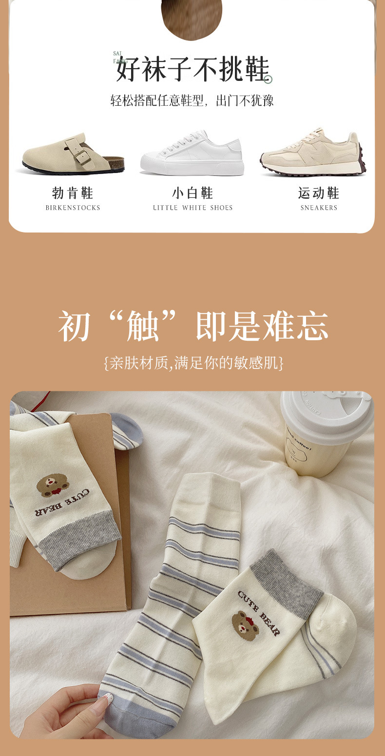 小熊袜子女秋季新款可爱卡通中筒袜奶蓝色学院风堆堆袜ins潮
