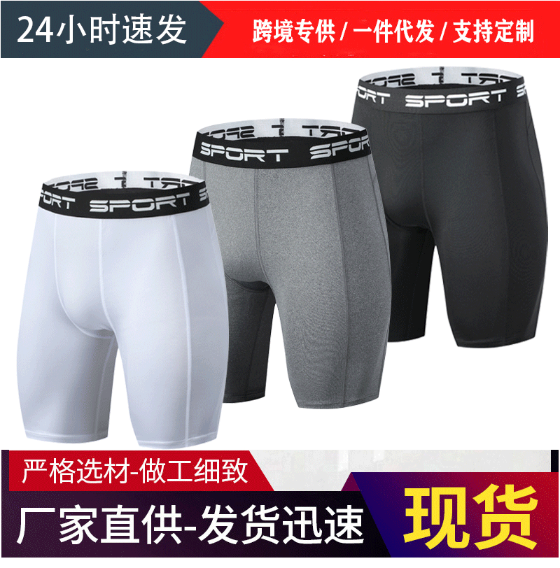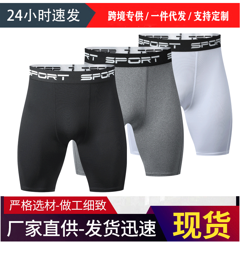 跨境专供夏季男士速干紧身裤健身跑步瑜伽五分短裤弹力吸汗透气