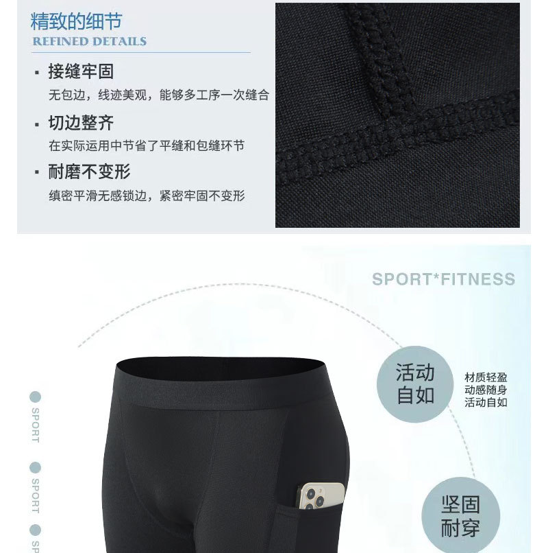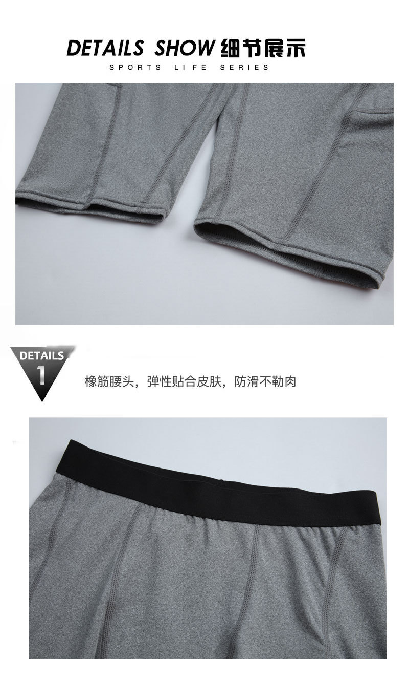 紧身裤男篮球健身田径五分裤速干运动短裤跑步训练户外口袋打底裤
