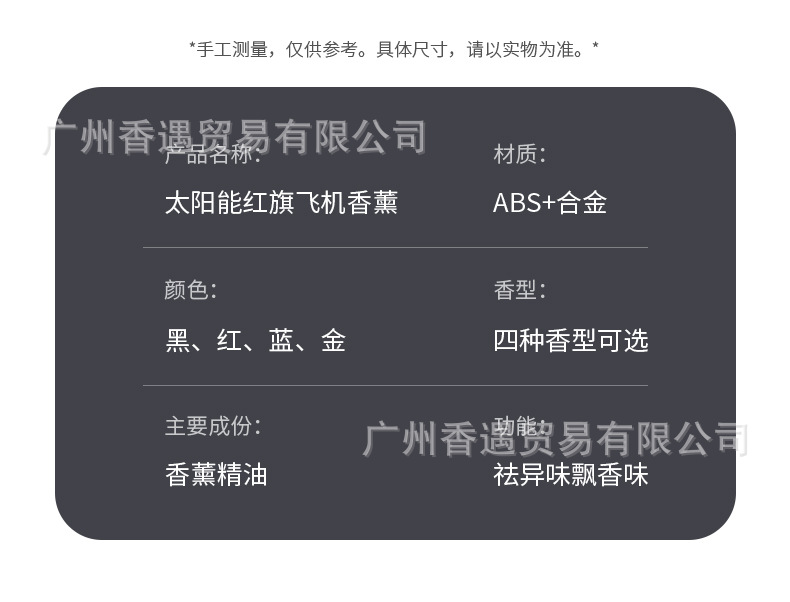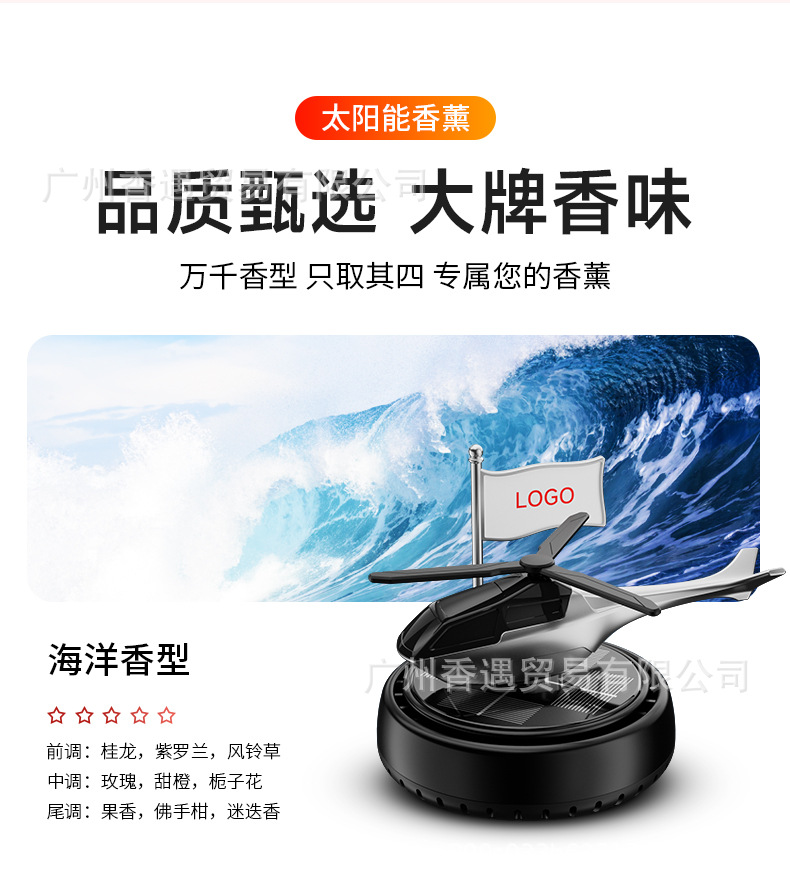 车载香薰红旗太阳能飞机摆件中控台持久香氛汽车用品除异味装饰