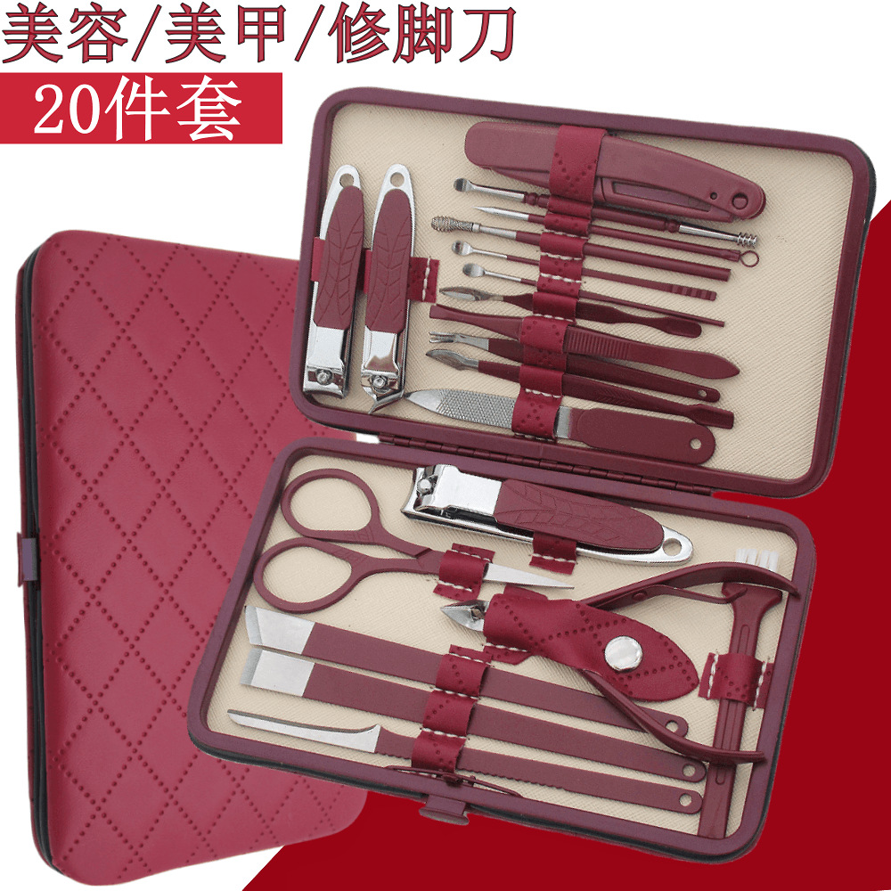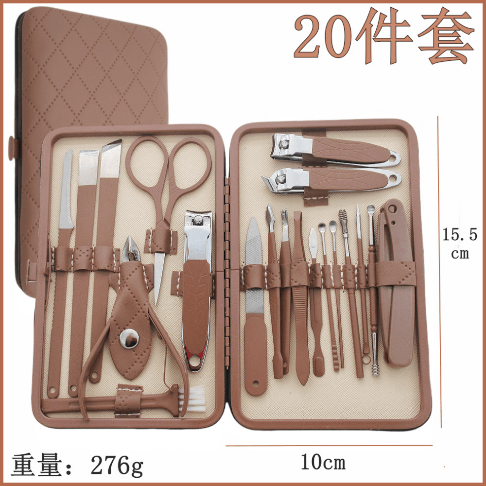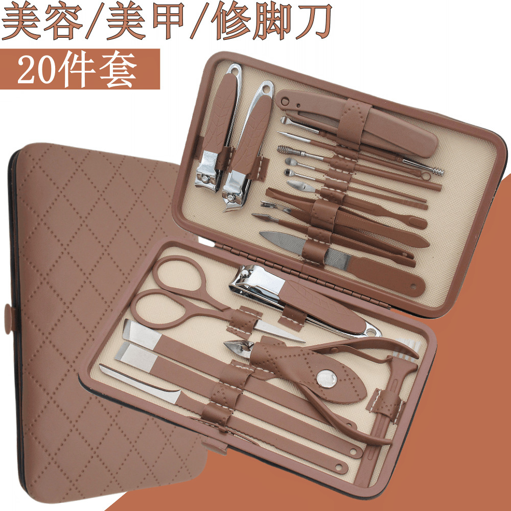 美甲套装 20件套不锈钢指甲钳 去死皮修剪指甲工具鹰嘴钳修脚刀剪