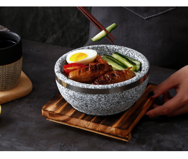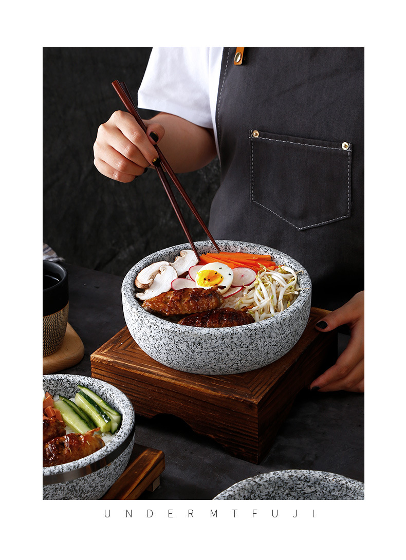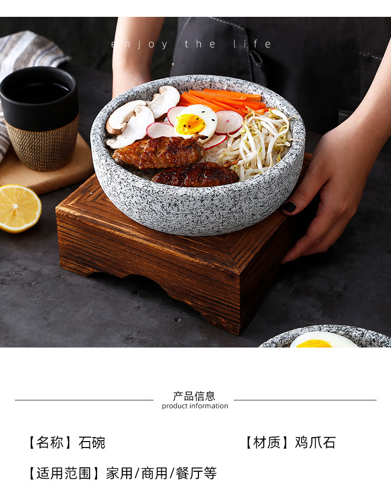 石锅韩式石碗天然粗犷石头碗韩国料理商用餐具耐高温石锅拌饭石碗