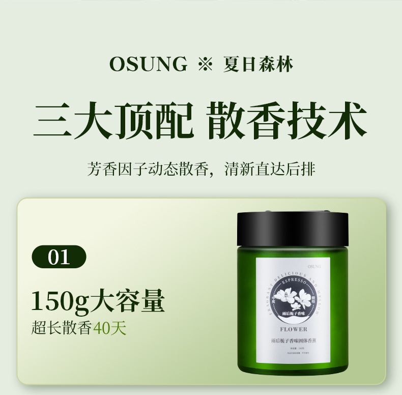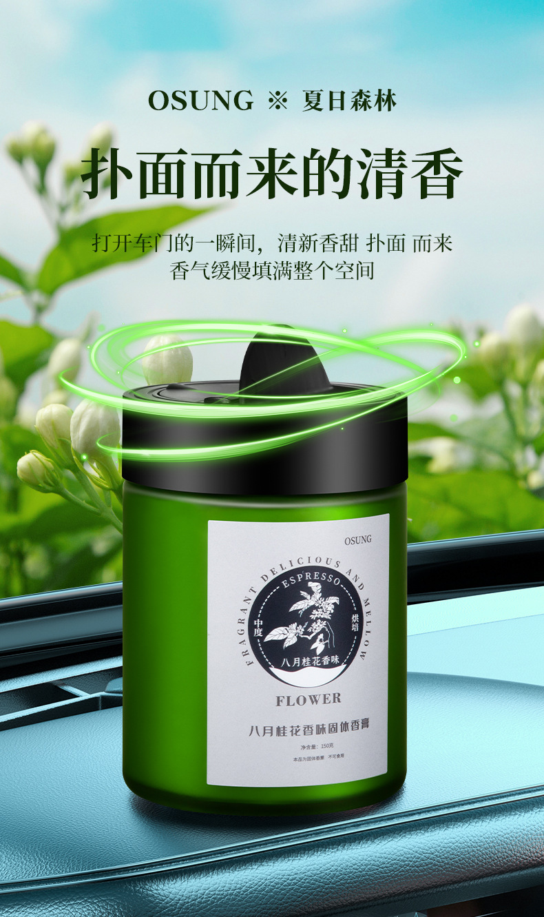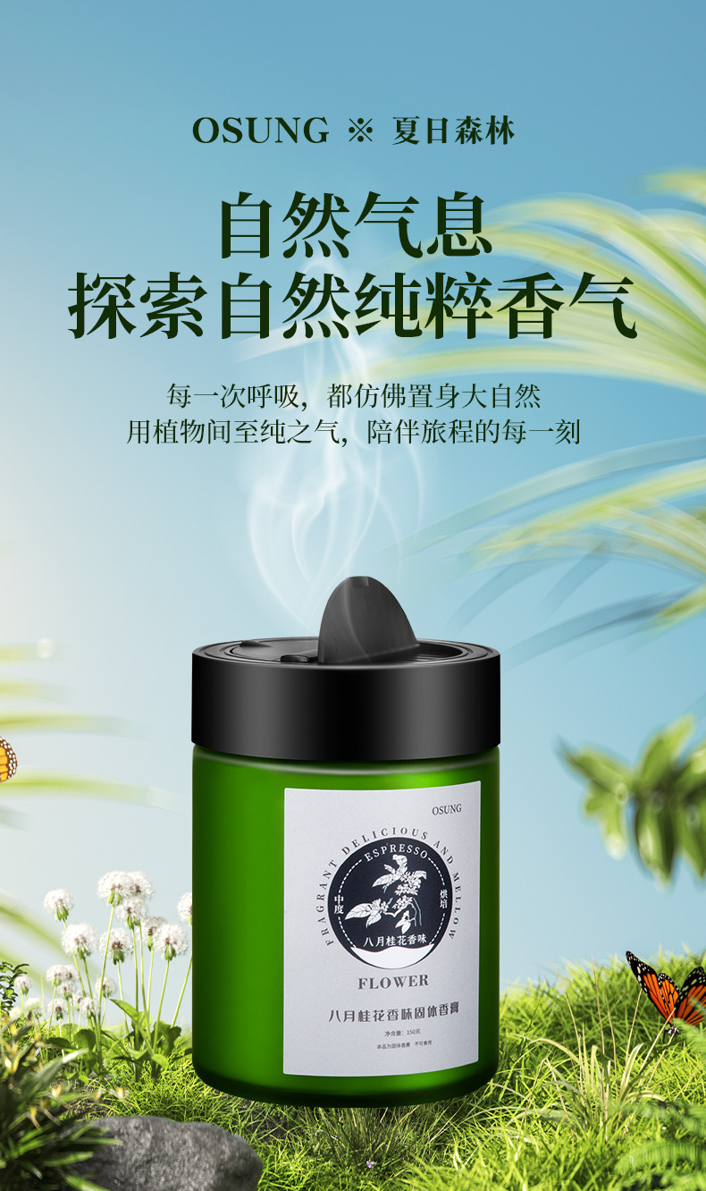 夏日森林车载香薰固体香膏 持久留香除臭0酒精大容量淡香车用香氛