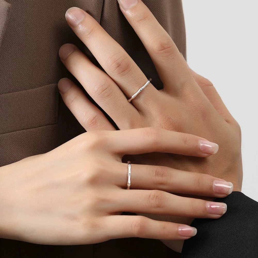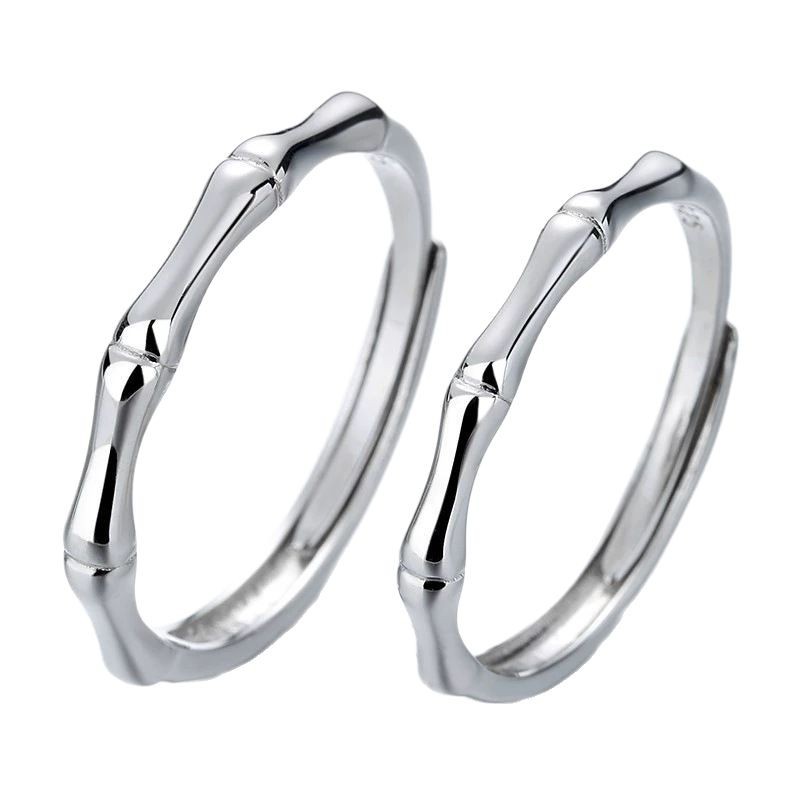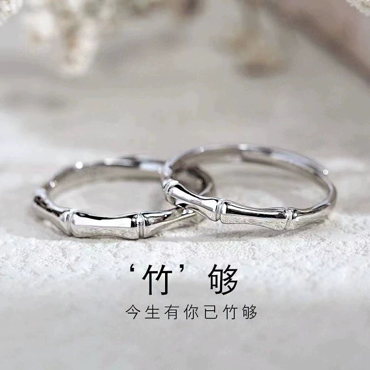 S999足银光面竹节莫比乌斯素圈戒男女情侣戒指ins小众高级感对戒