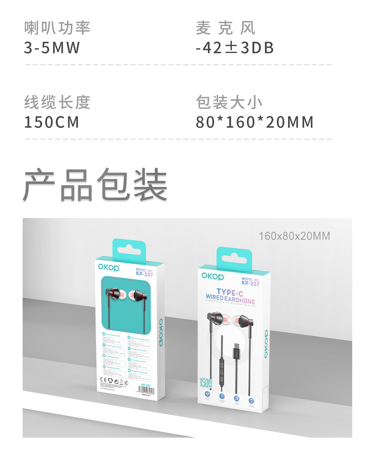 237手机线控耳机有线USB-C口适用苹果安卓手机高音质无延迟入耳式