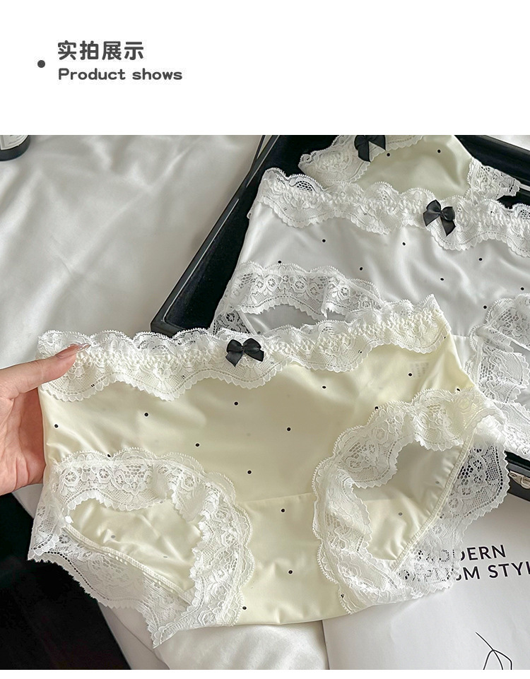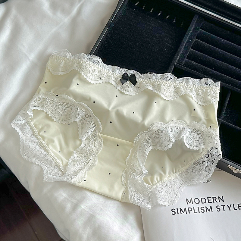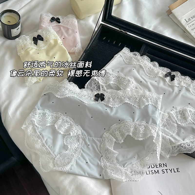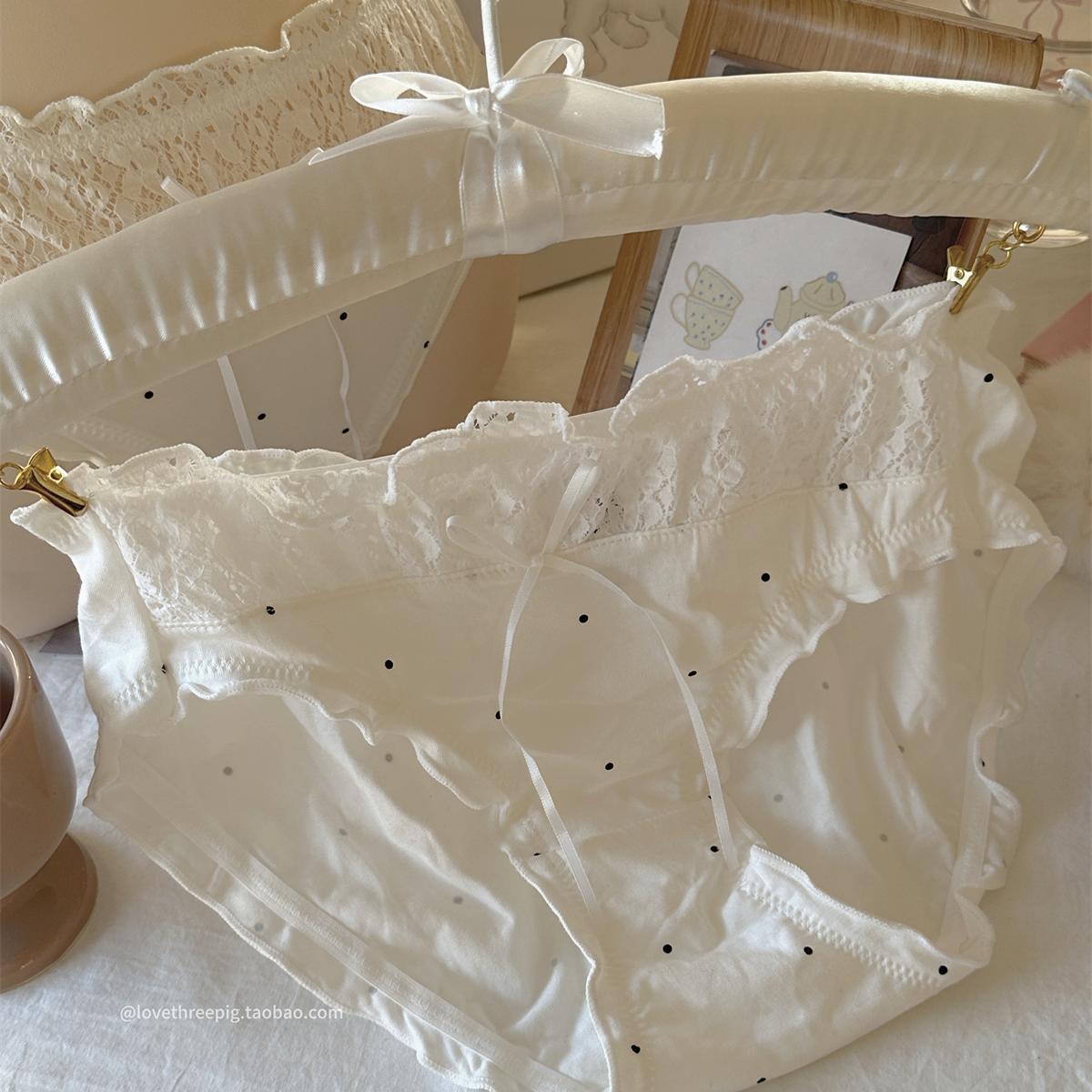 少女感蕾丝蝴蝶结波点少感舒适弹力中腰奶油蛋糕 三角内裤学生