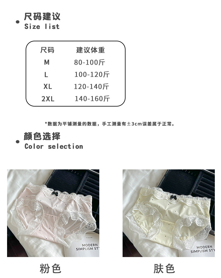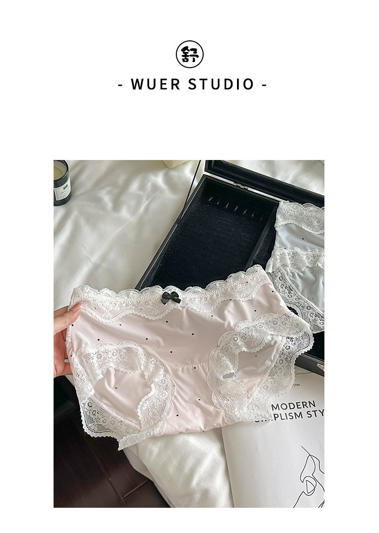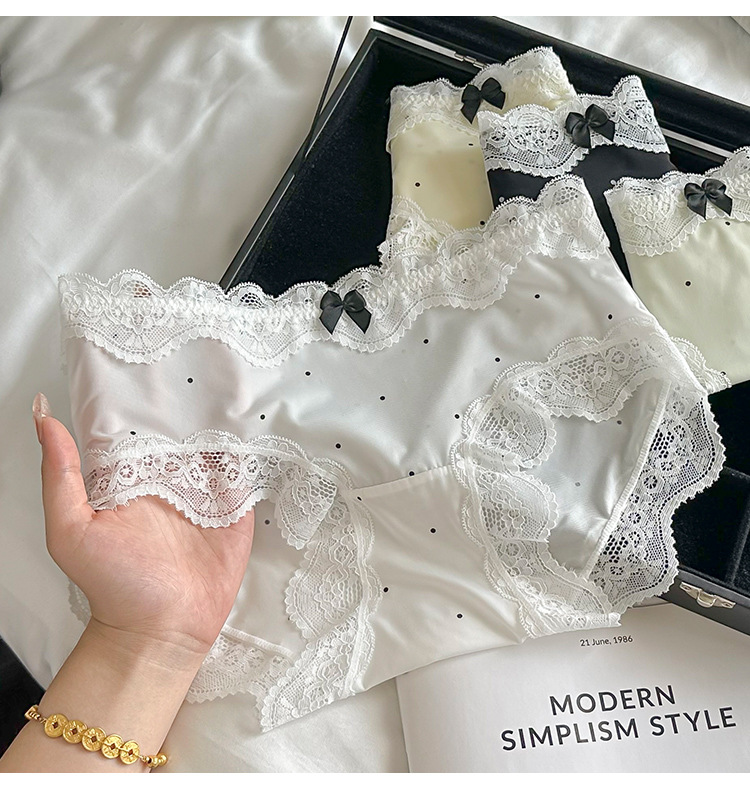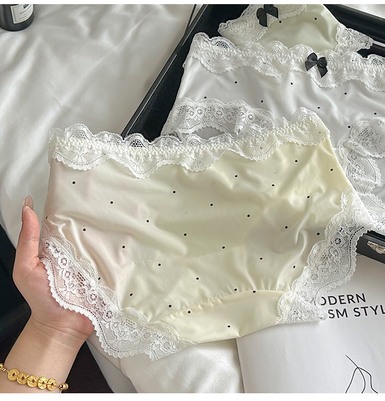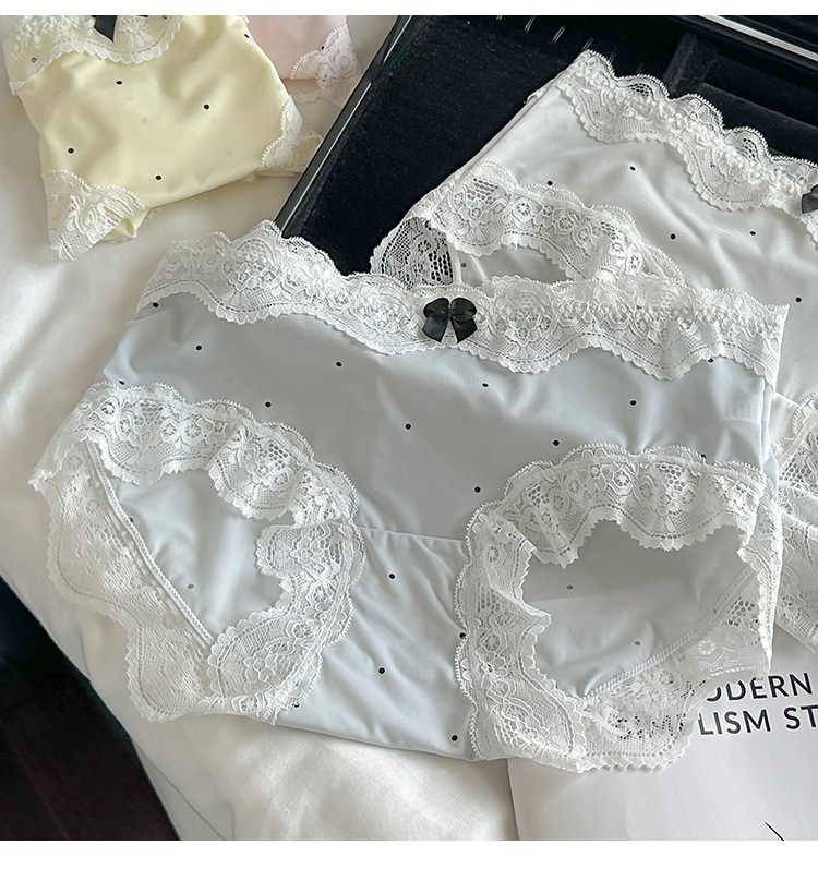 少女感蕾丝蝴蝶结波点少感舒适弹力中腰奶油蛋糕 三角内裤学生