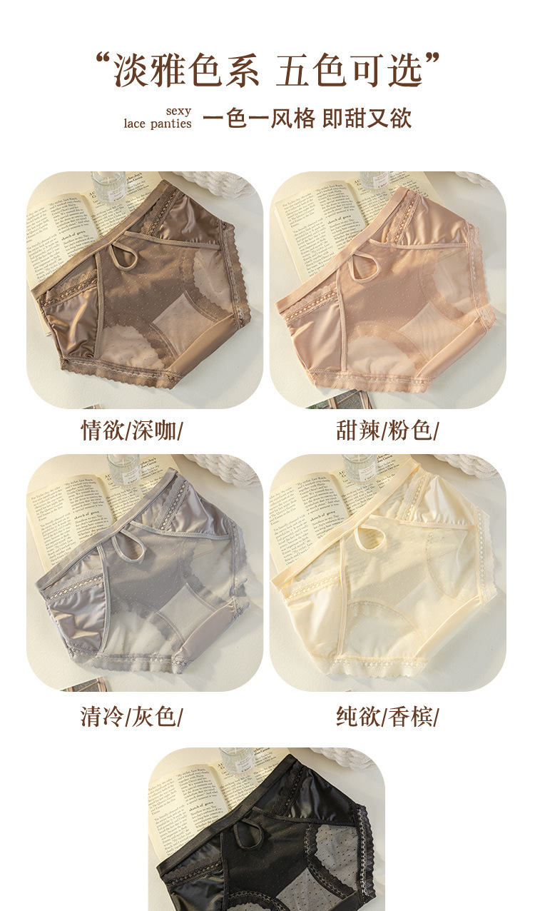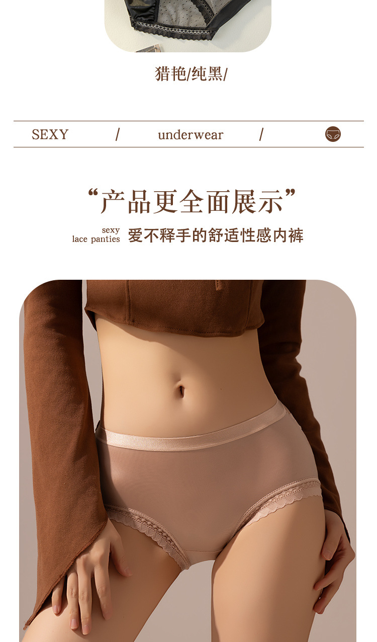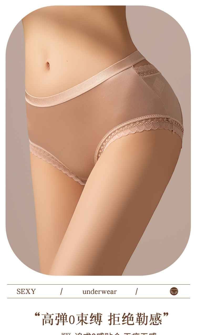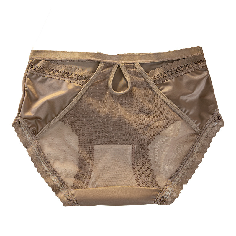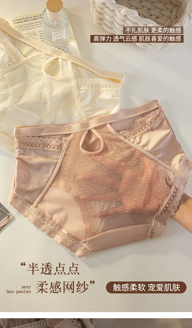 轻奢女士内裤缎面性感风法式女士中腰网纱三角裤蕾丝透明镂空舒适