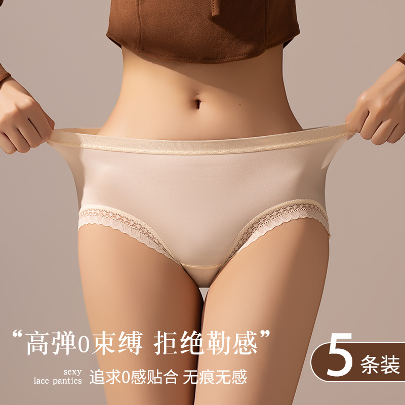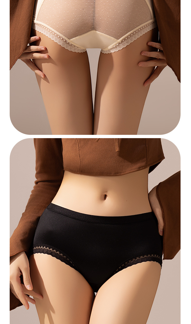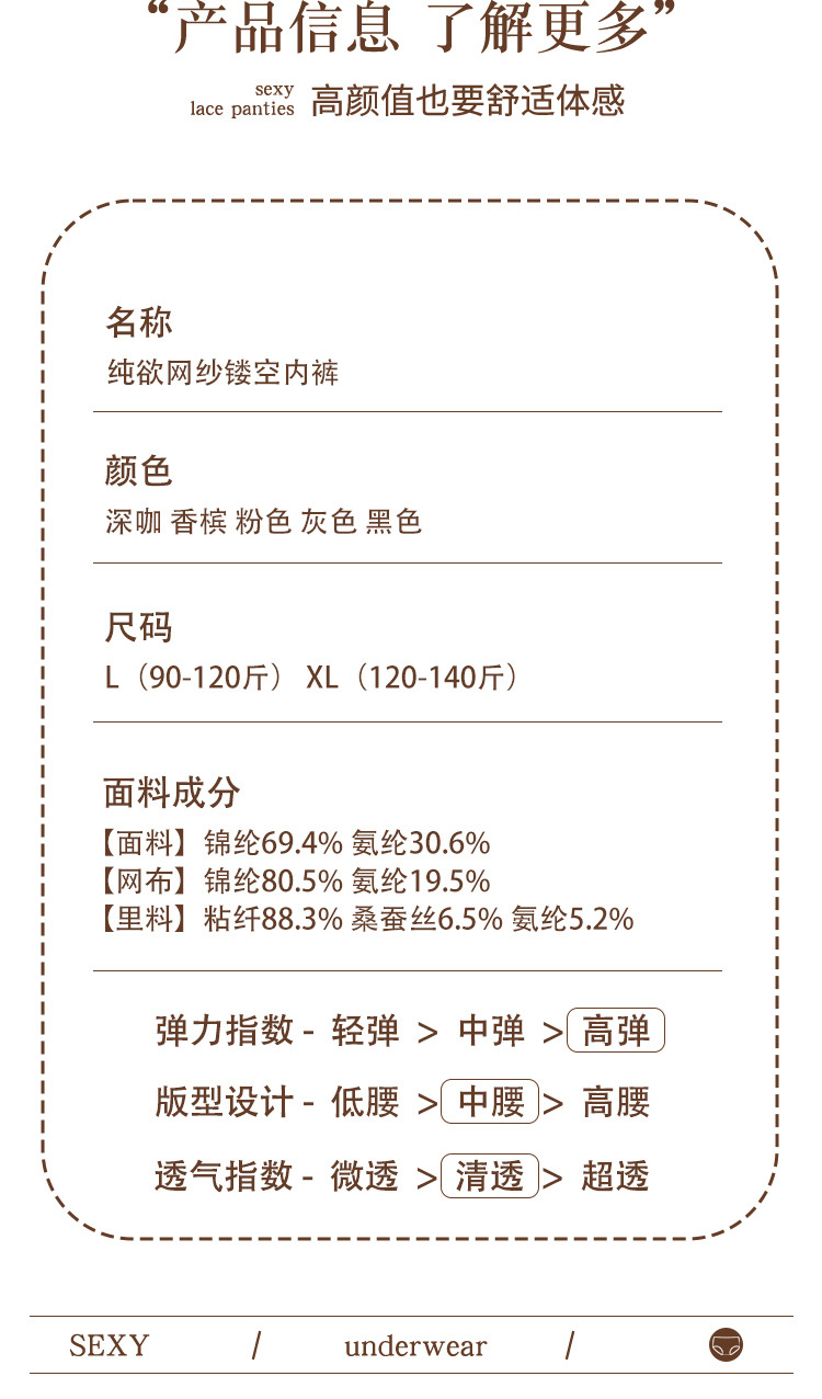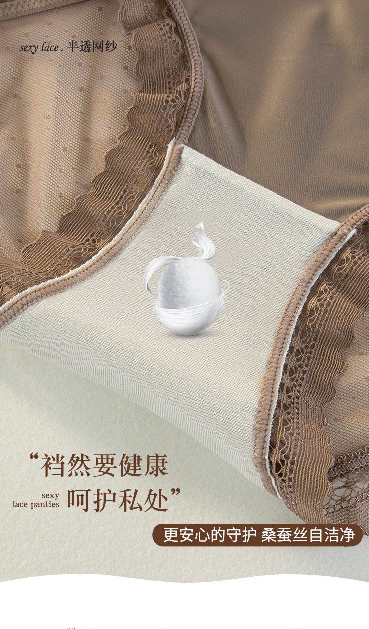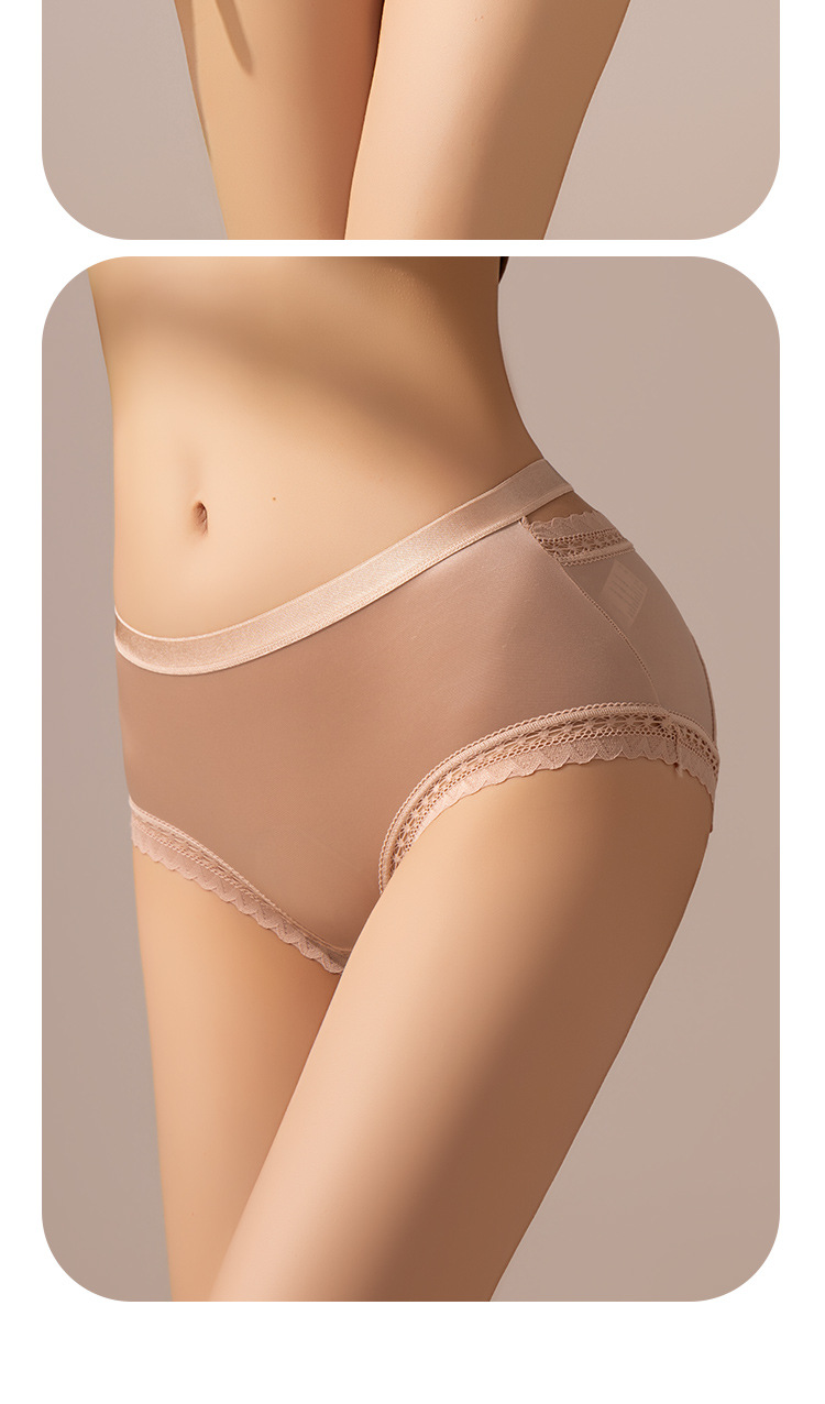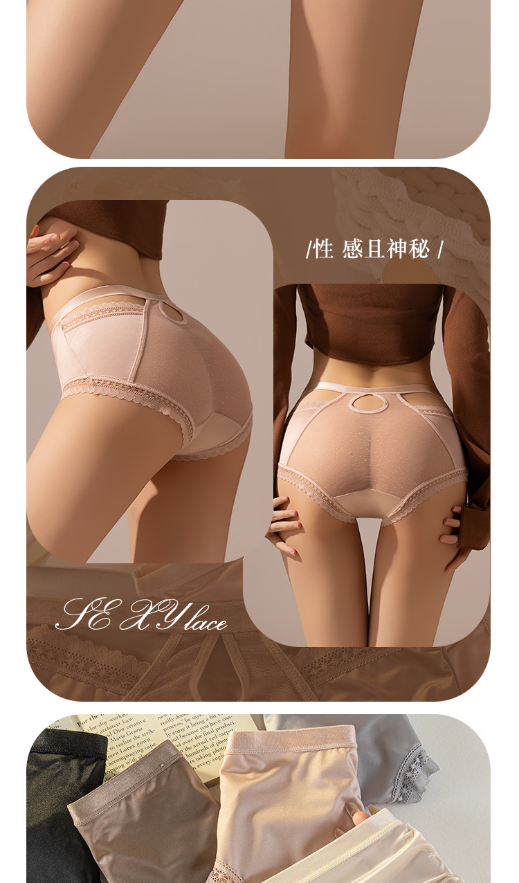 轻奢女士内裤缎面性感风法式女士中腰网纱三角裤蕾丝透明镂空舒适