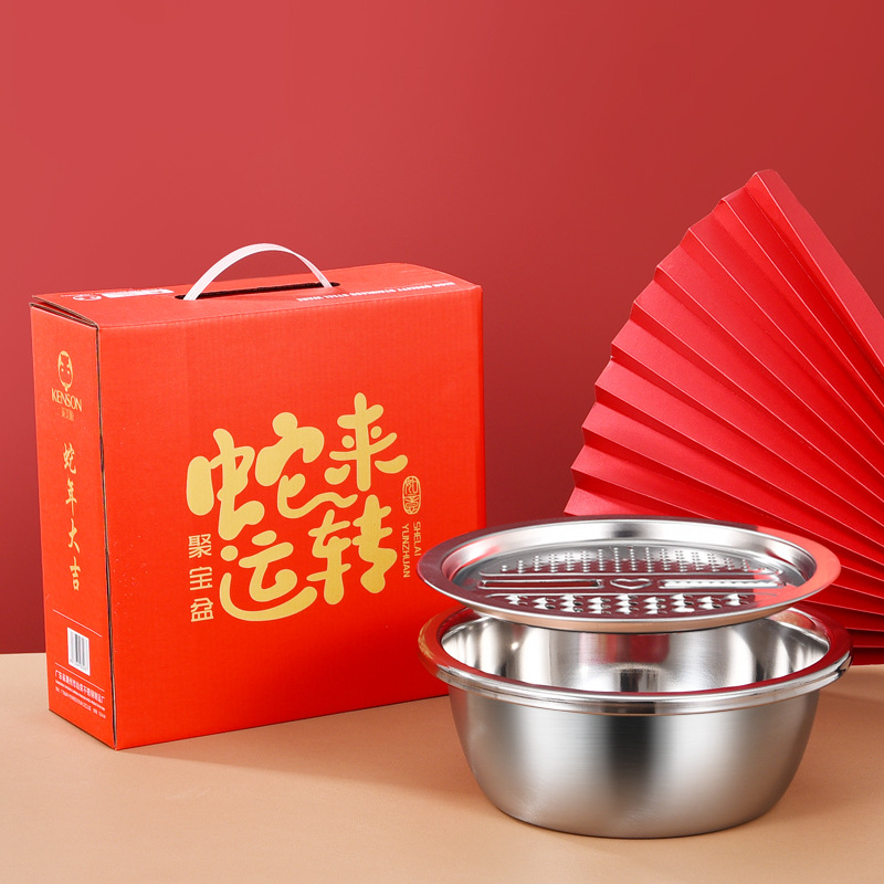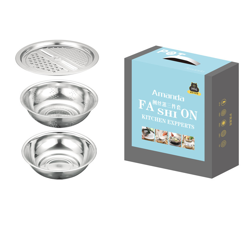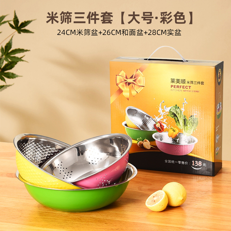 莱美顺不锈钢沥水篮米筛三件套淘米洗菜多用盆中秋国庆保险礼品套
