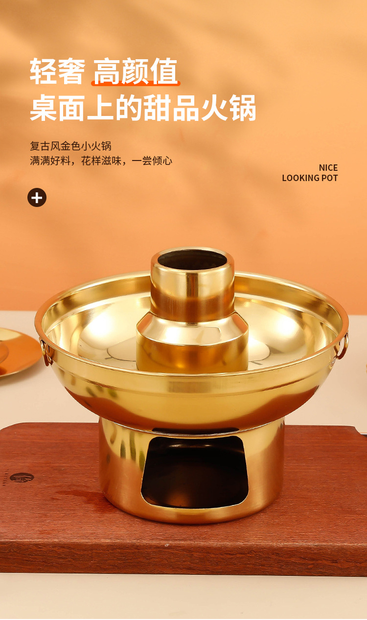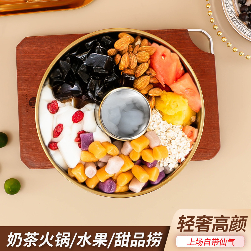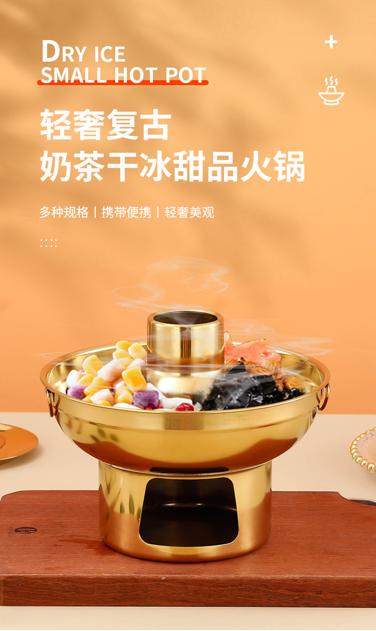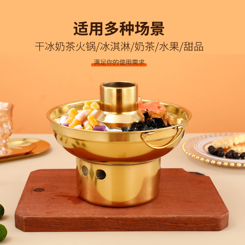 商用冰淇淋火锅奶茶餐厅甜品干冰不锈钢小火锅水果捞围炉芋圆仙草