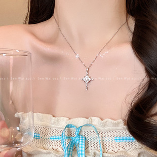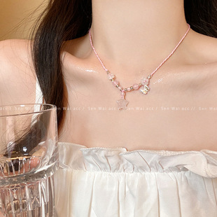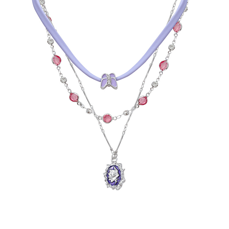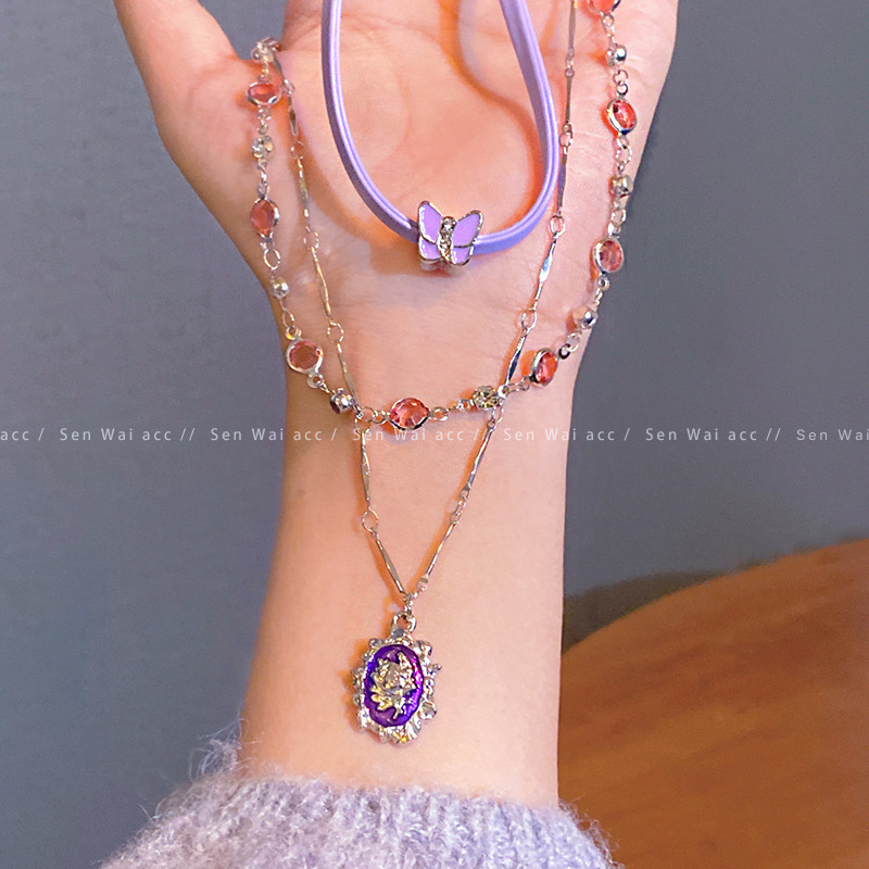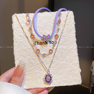 紫色多层叠戴蝴蝶皮革项链女甜酷风气质高级感锁骨链颈链配饰批发