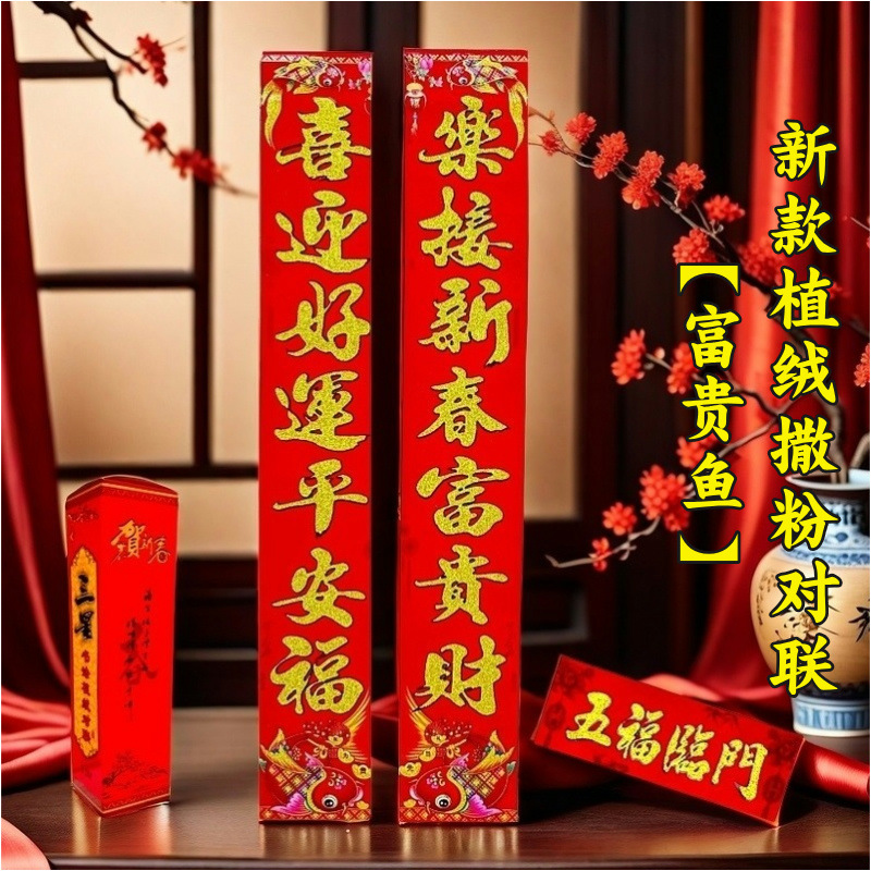 马年新款盒装植绒撒粉对联春节过年乔迁金粉黑粉七字言春联门贴