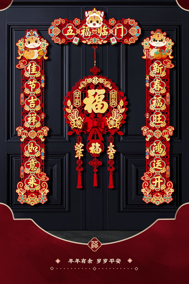 2026新款马年对联批货新年过节大门布置福字门贴春节门联装饰挂件