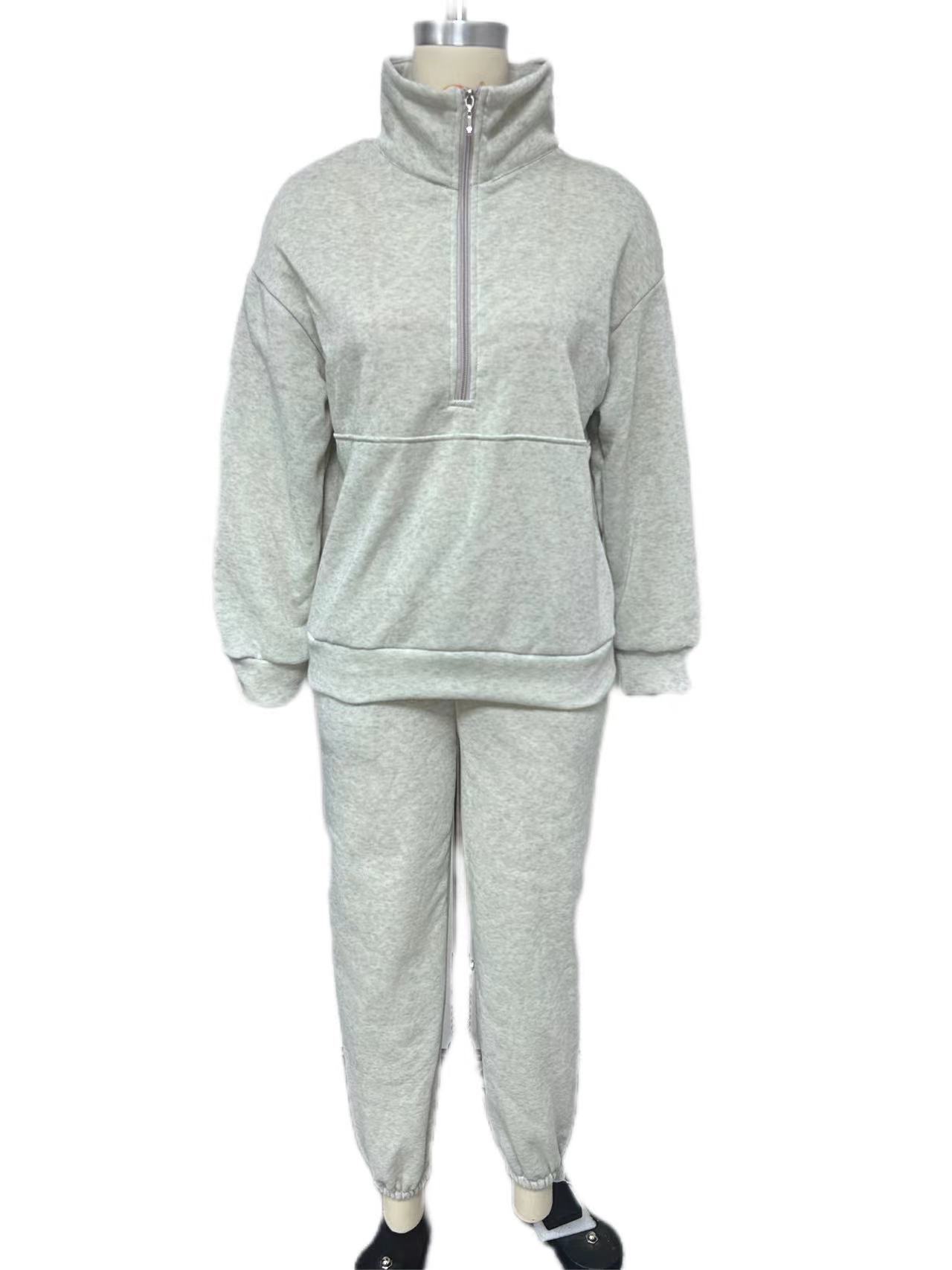 2023欧美女装新款亚马逊百搭休闲时尚加厚长袖卫衣长裤两件套装