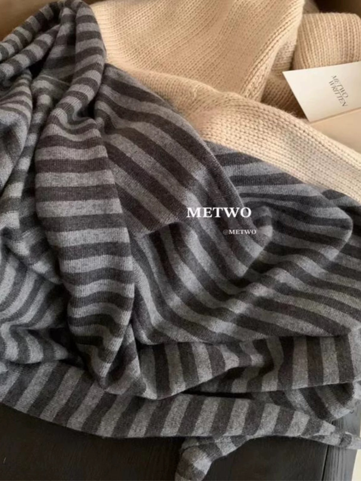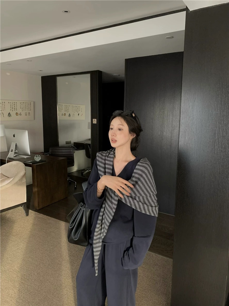 条纹三角大披肩针织韩系慵懒风含羊毛秋冬加厚外搭学生百搭女围巾