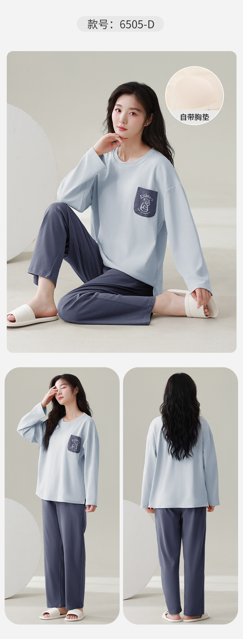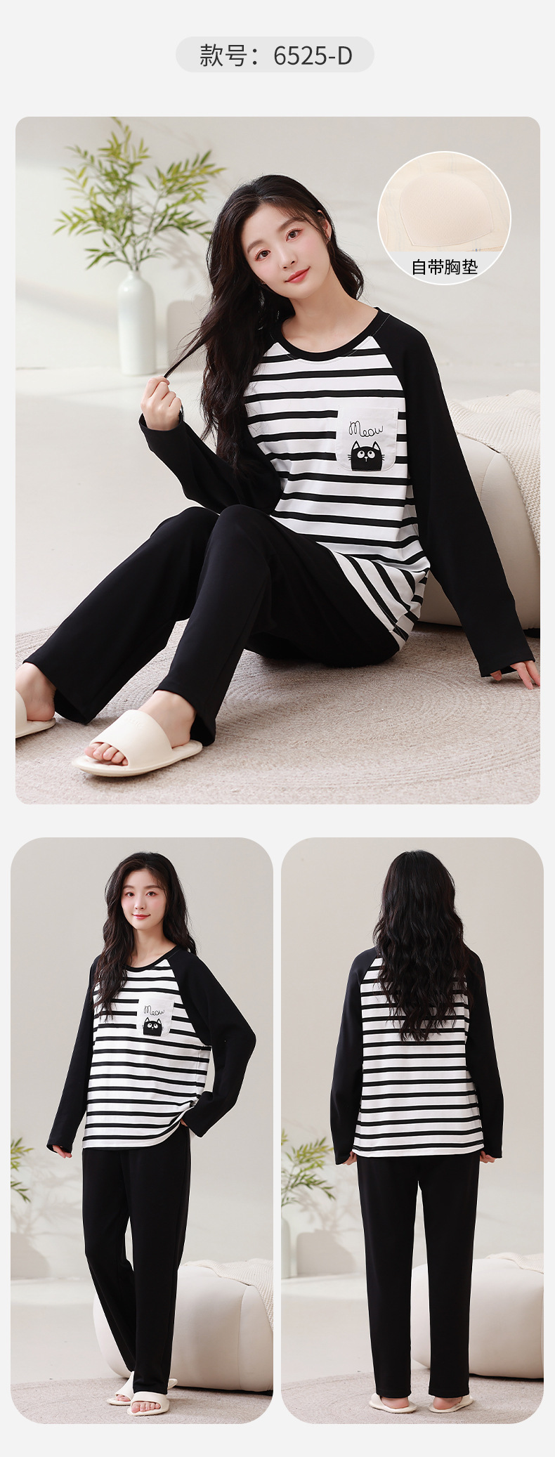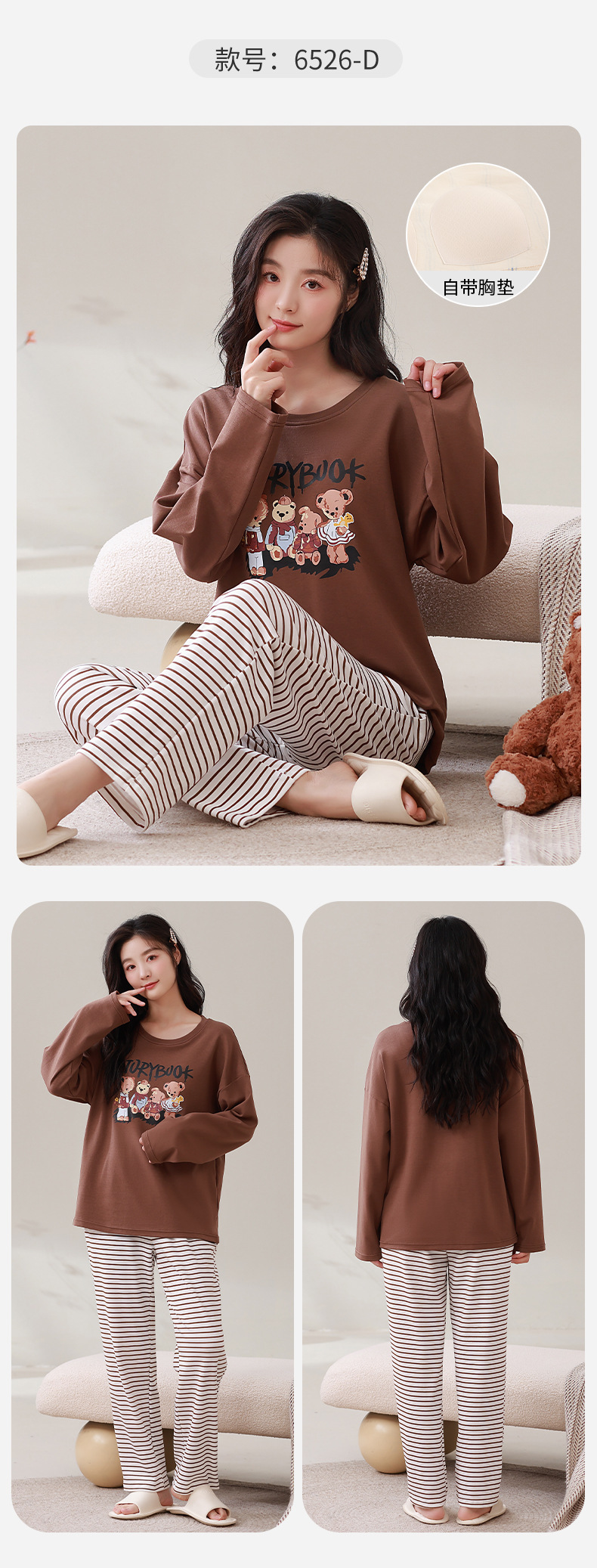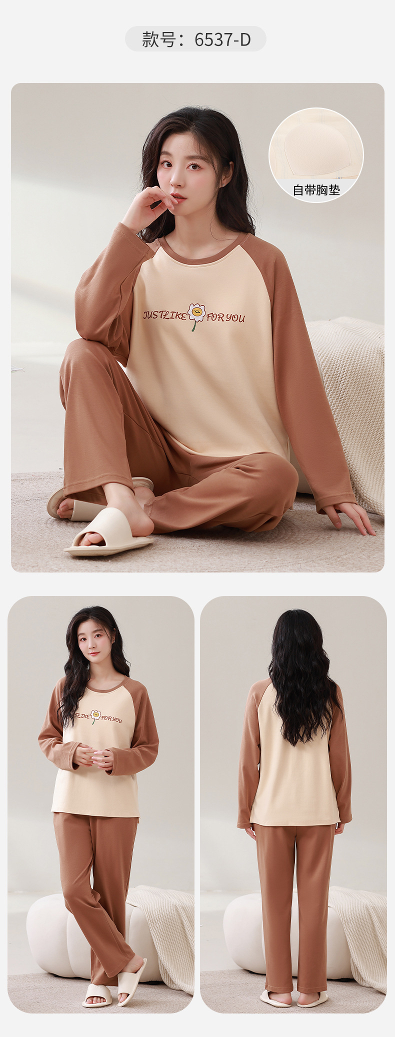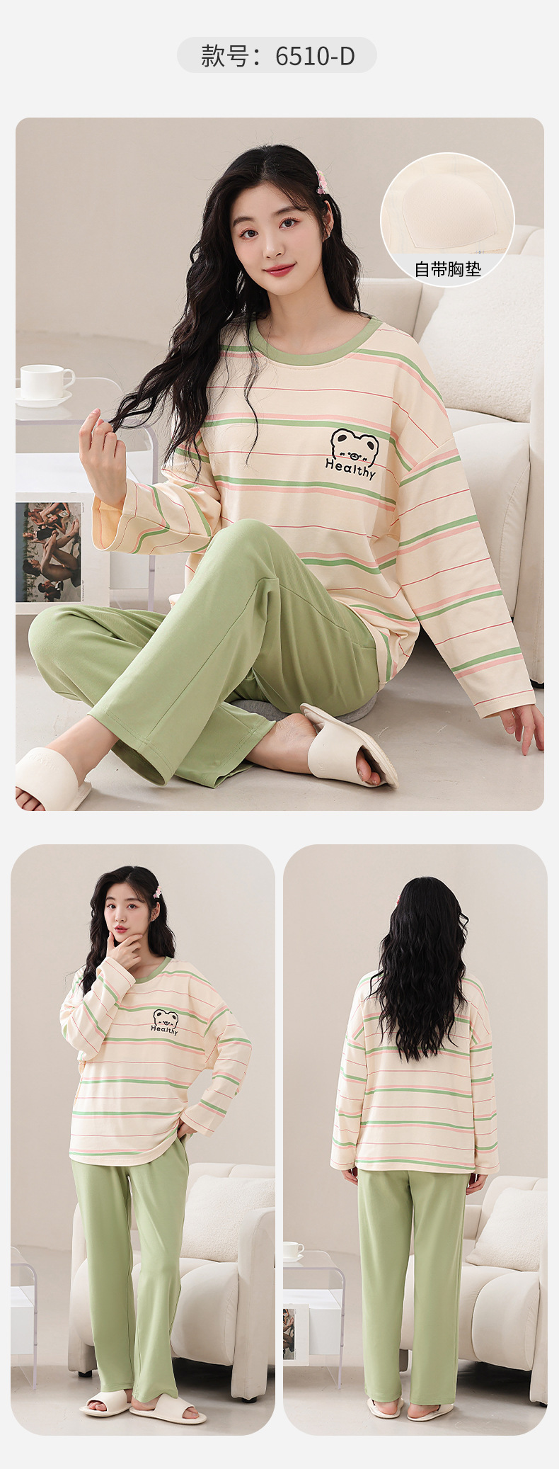 带胸垫睡衣女春秋冬季纯棉长袖宽松套头全棉新款家居服可外穿套装