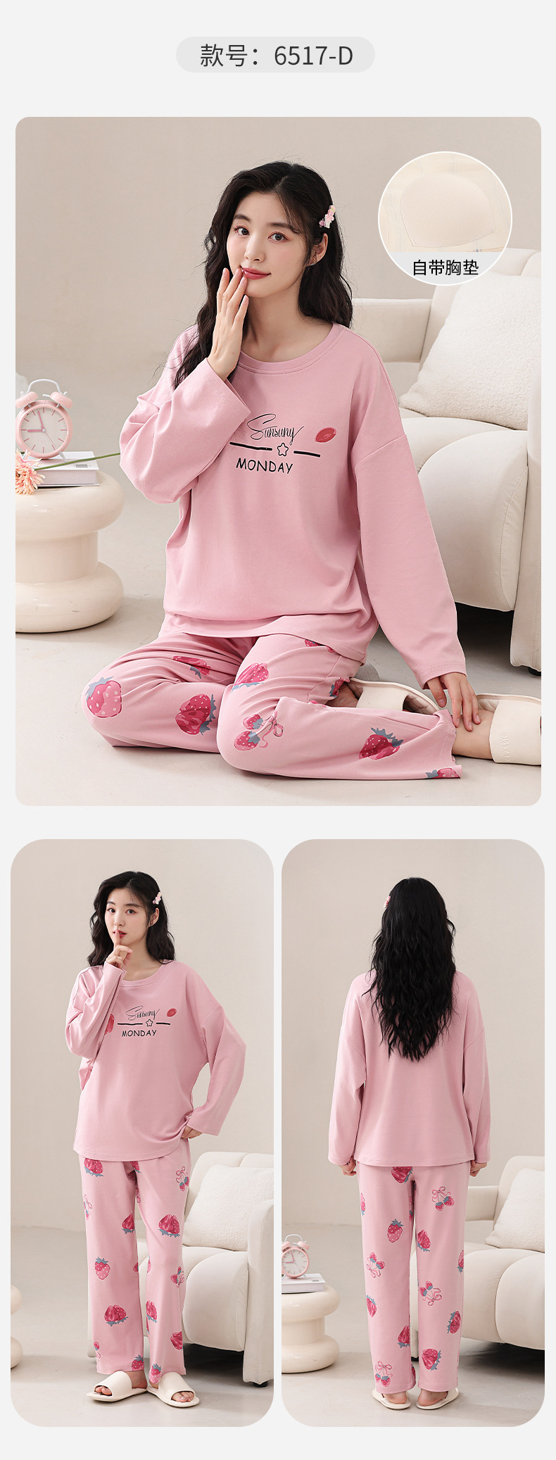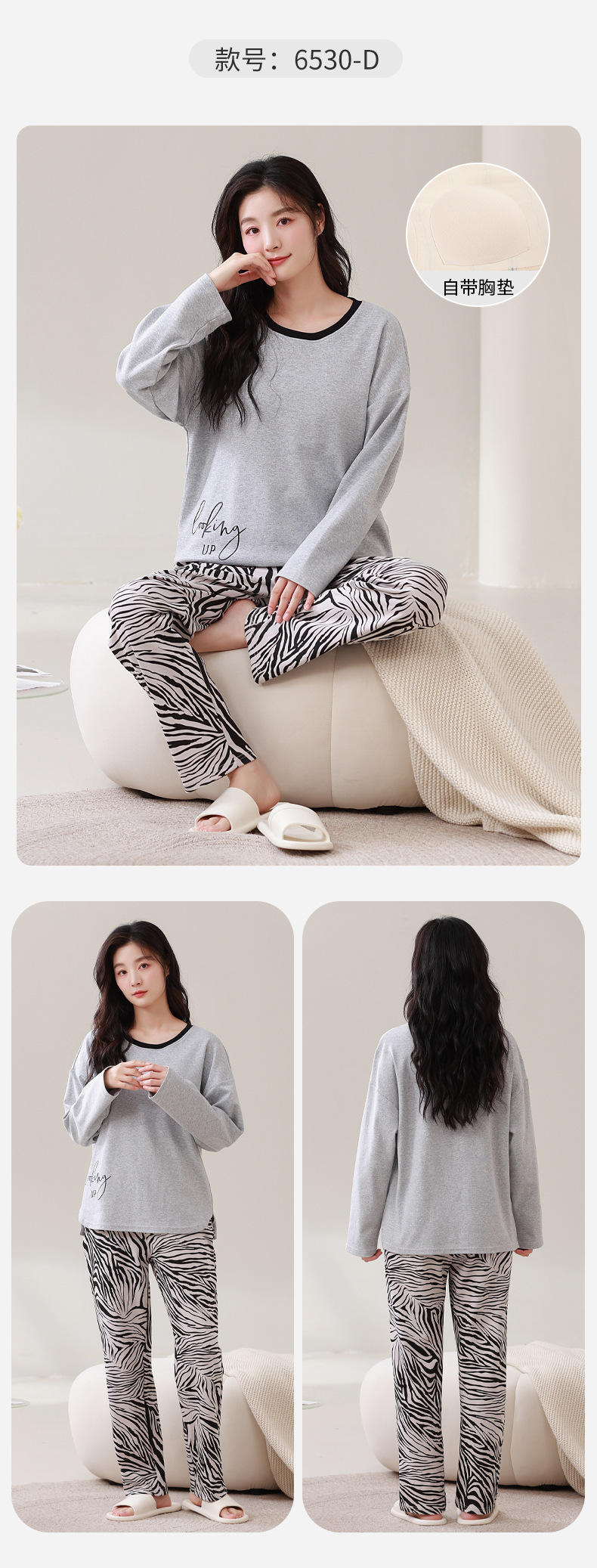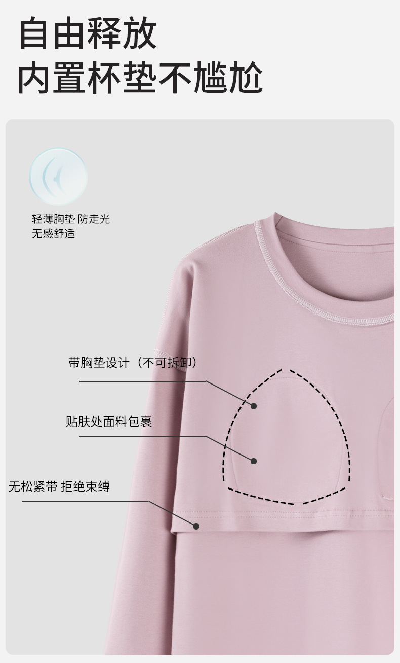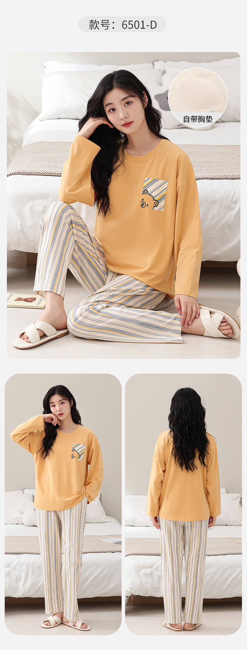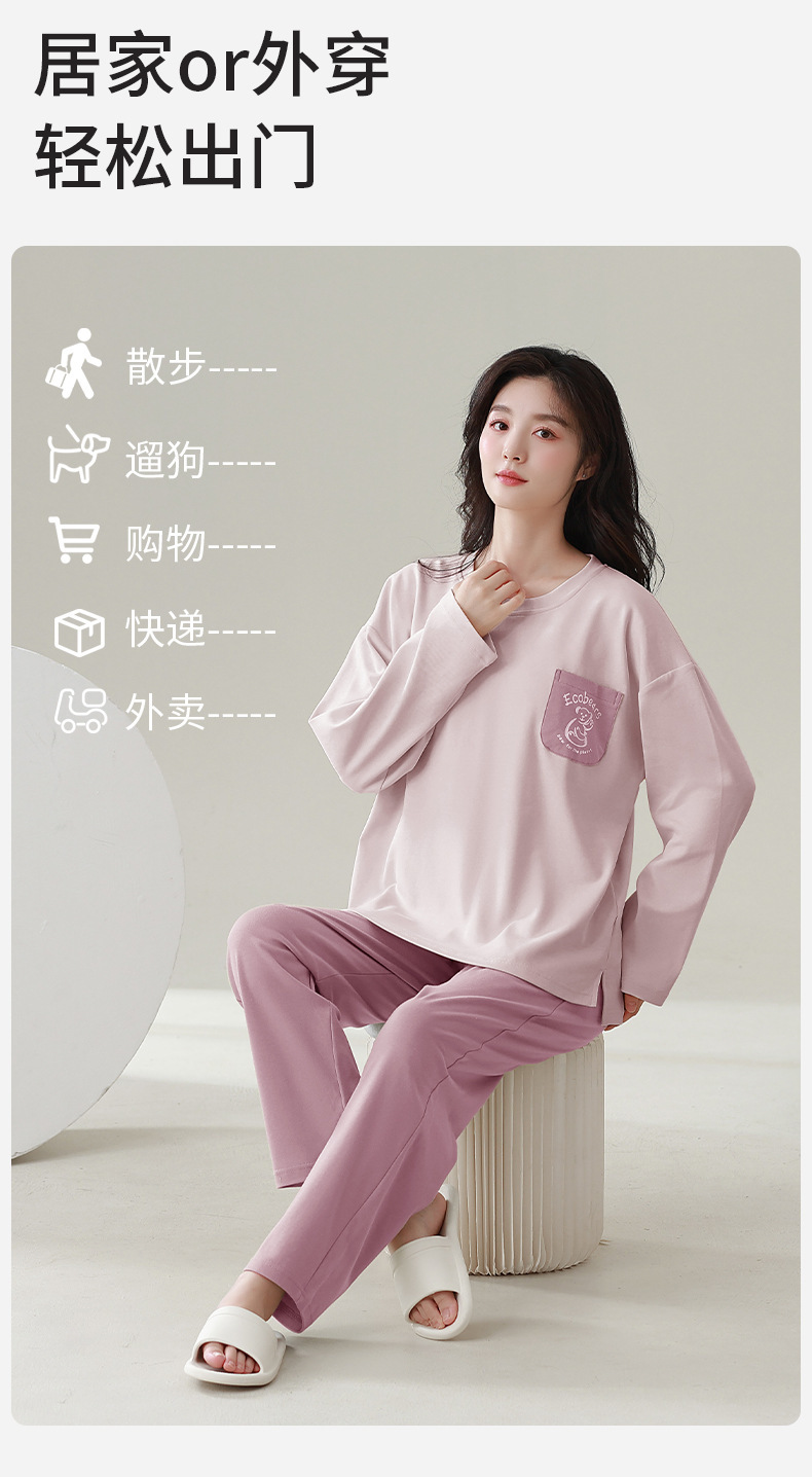 带胸垫睡衣女春秋冬季纯棉长袖宽松套头全棉新款家居服可外穿套装