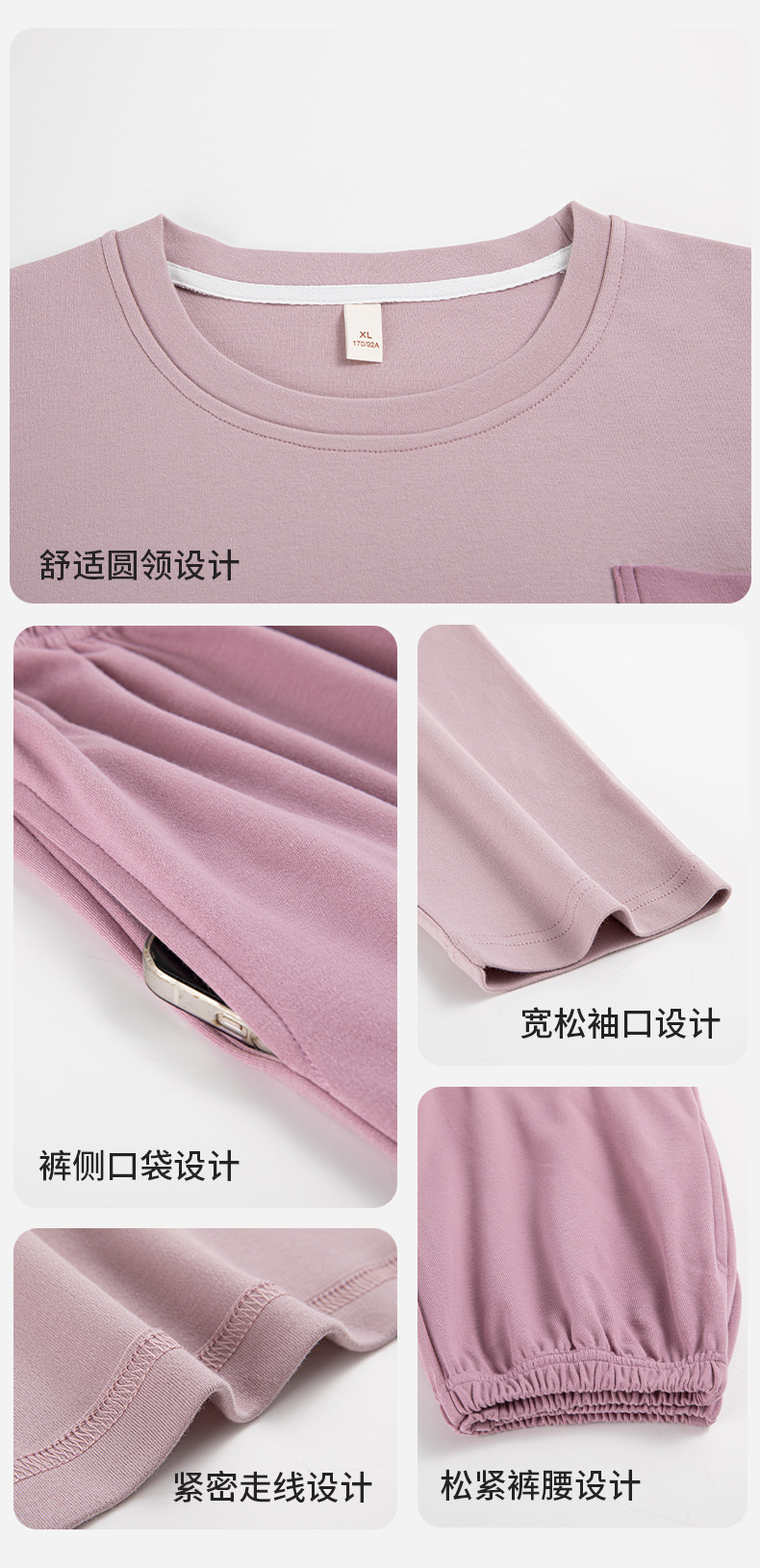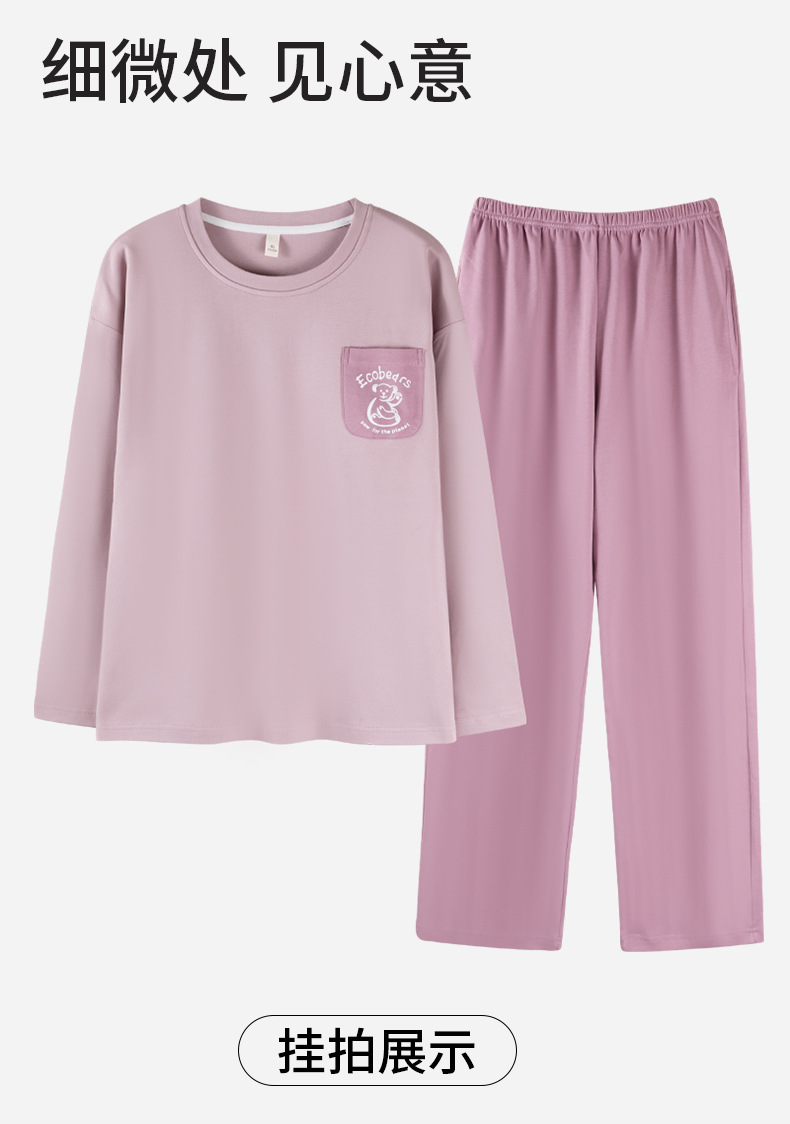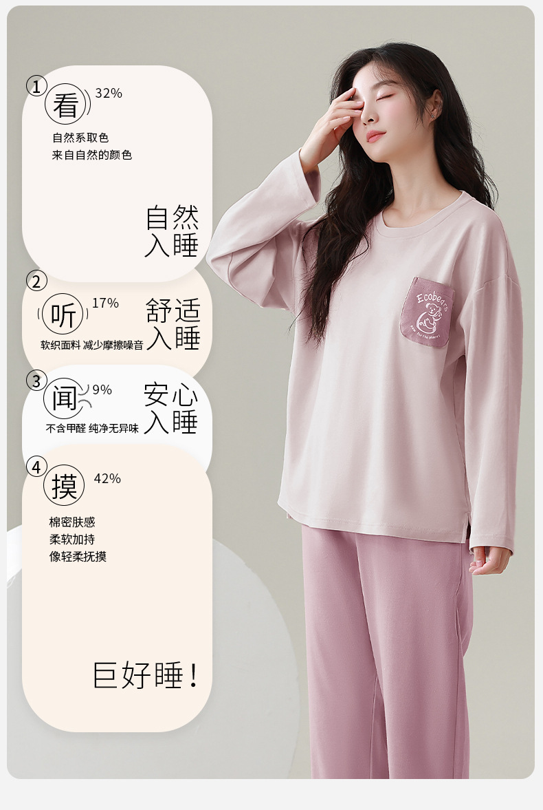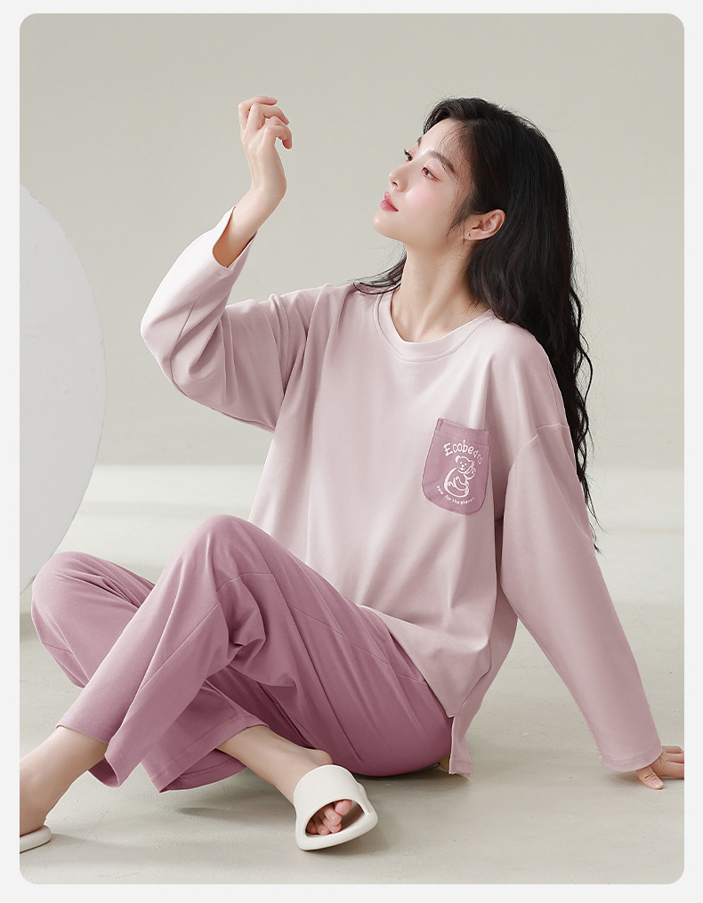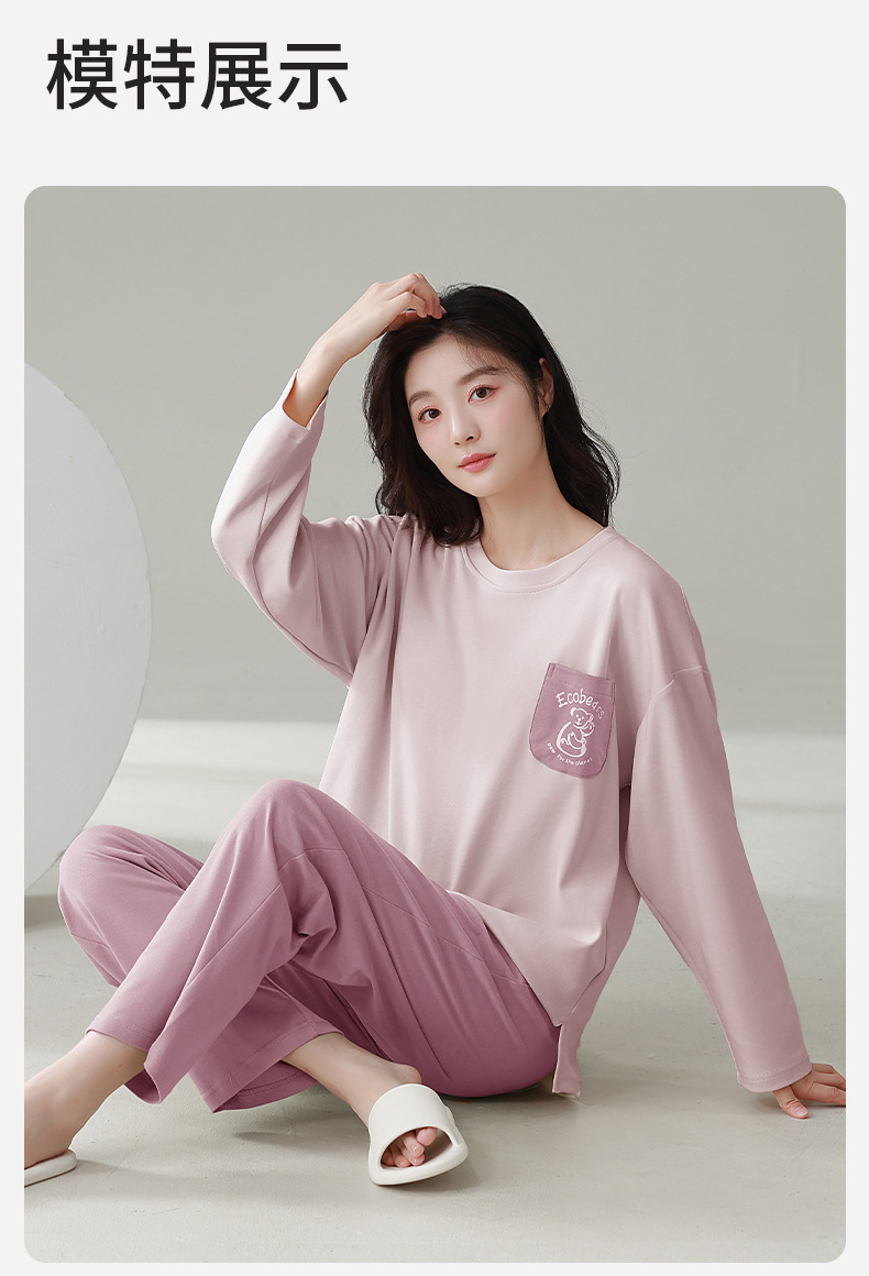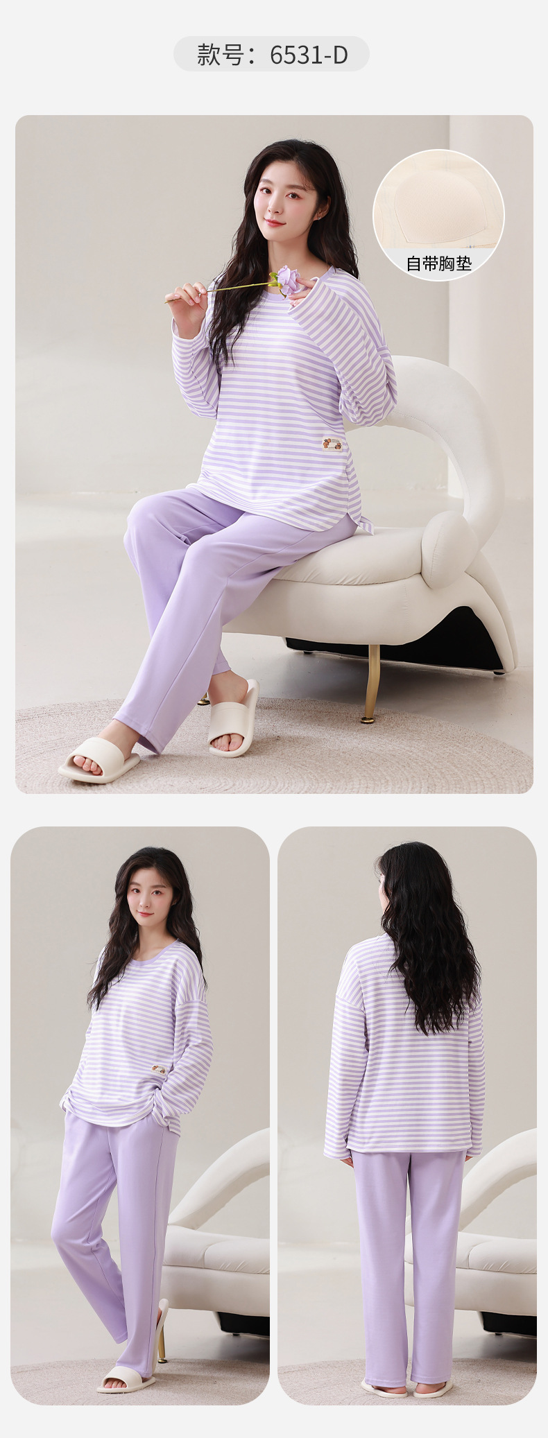 带胸垫睡衣女春秋冬季纯棉长袖宽松套头全棉新款家居服可外穿套装