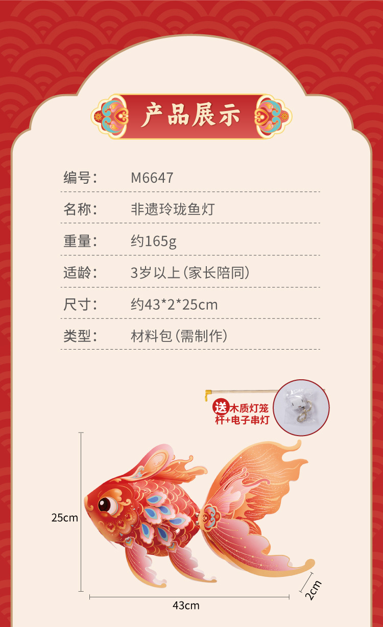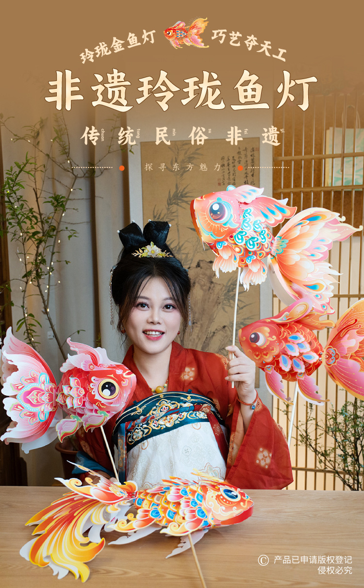 中秋玲珑鱼灯手工制作材料包儿童古风锦鲤金鱼灯笼手提发光鱼灯