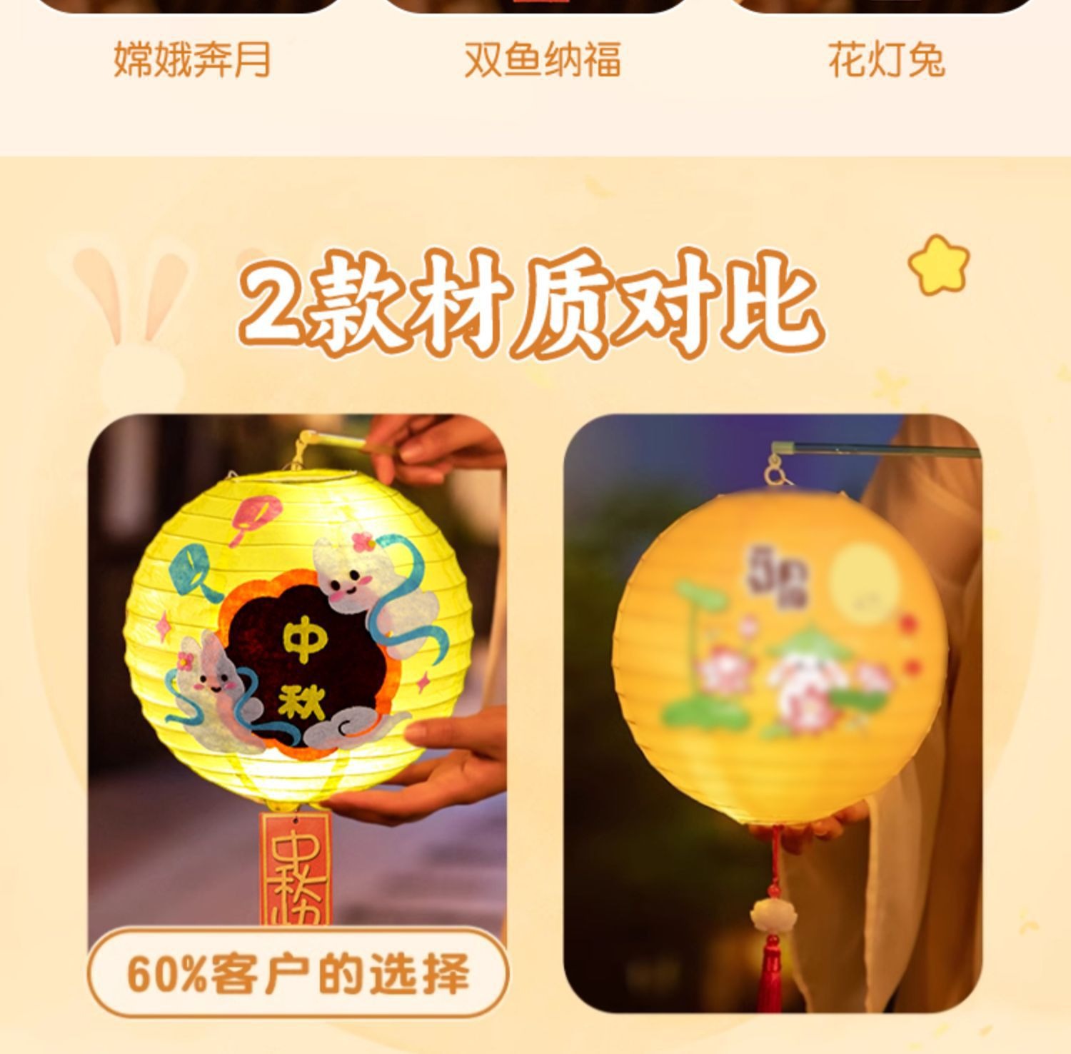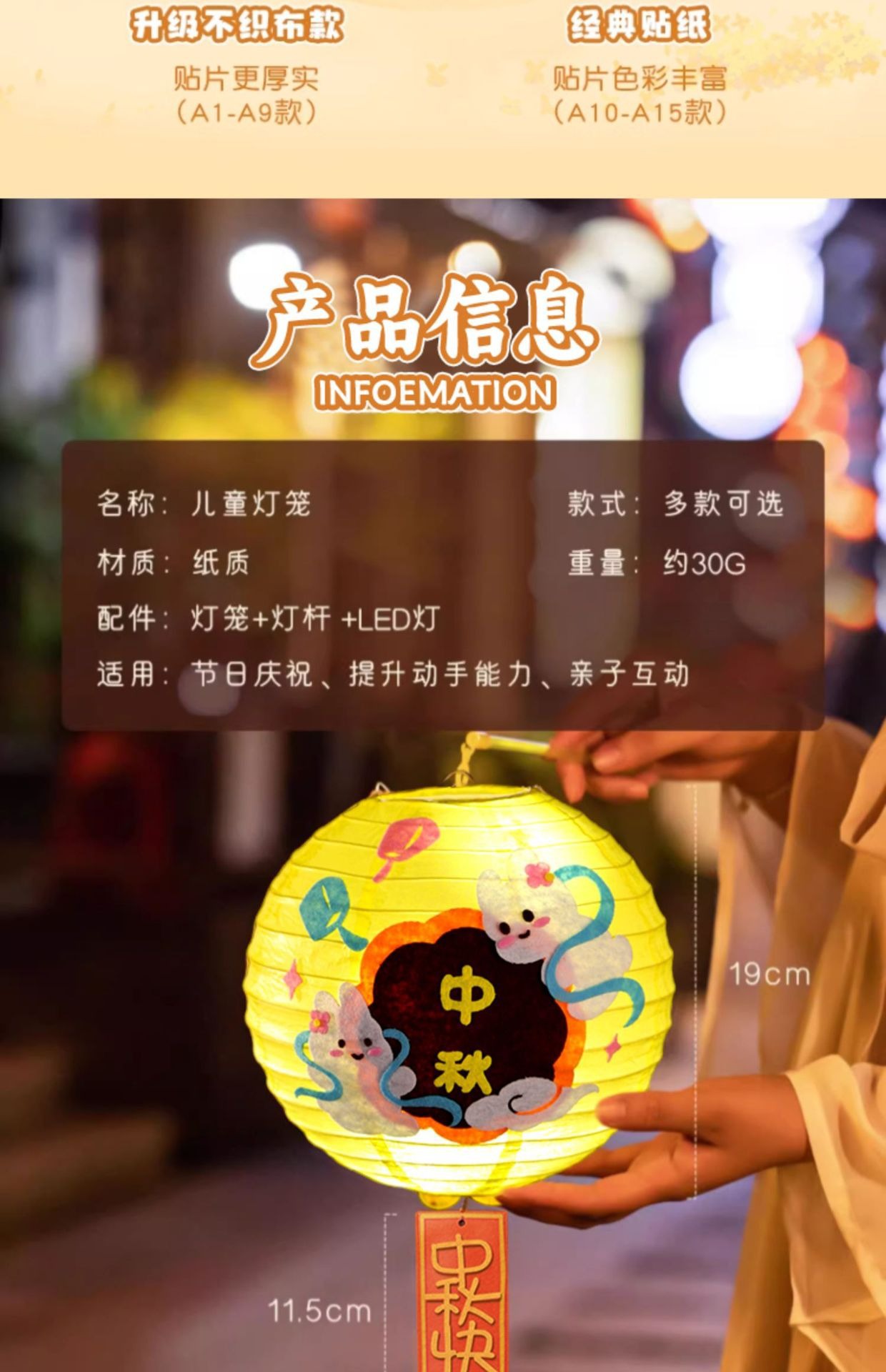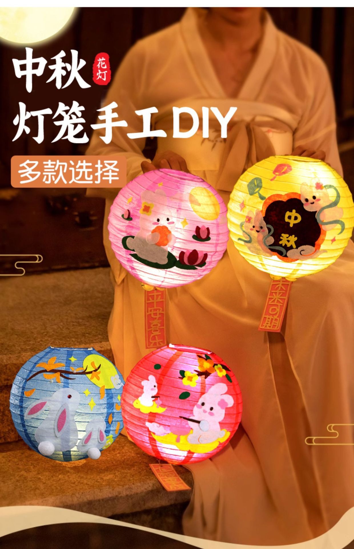 中秋节灯笼手工diy材料包儿童手提小兔子2025新款制作花灯幼儿园