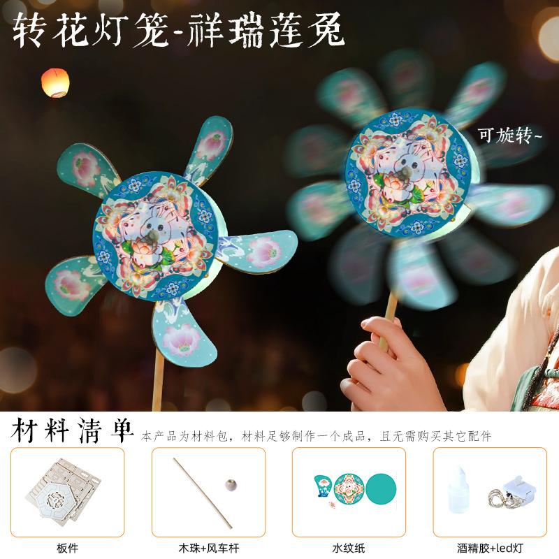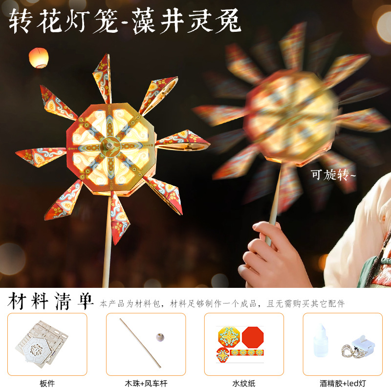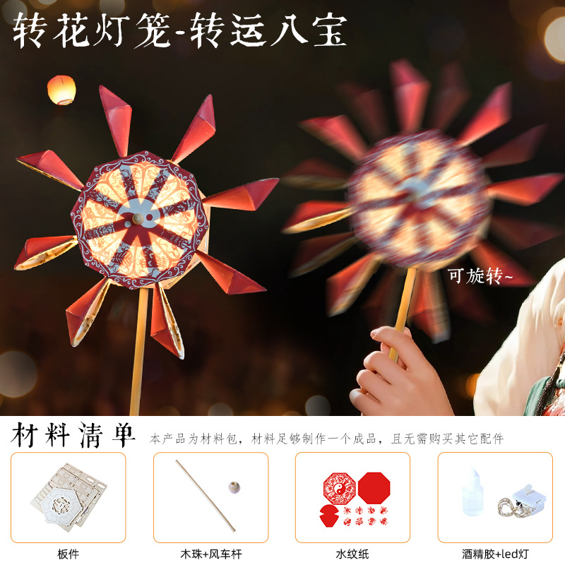 中秋转花灯diy手工制作宫灯古画花灯2025手持发光灯夜市摆摊批发