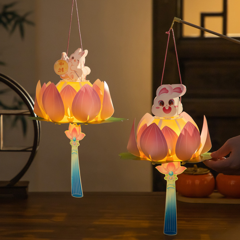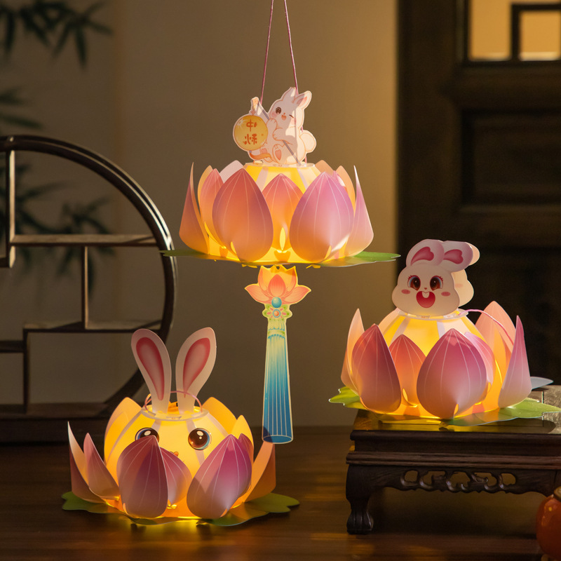 中秋节灯笼2025儿童手工diy材料包古风手提兔子莲花灯幼儿园礼物