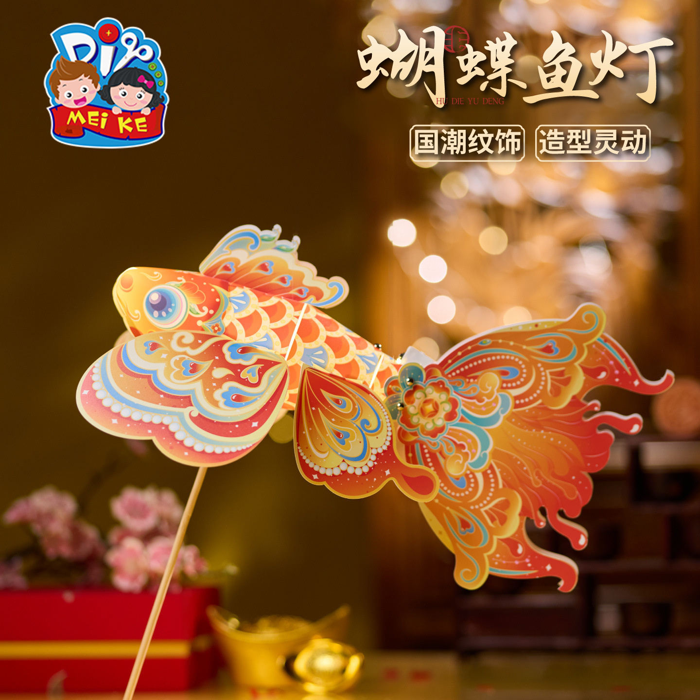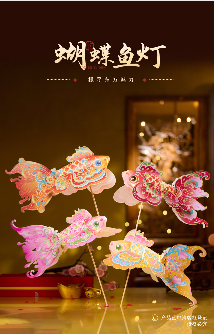 中秋蝴蝶鱼灯笼手工diy金鱼灯儿童制作材料花灯发光手持拍照神器