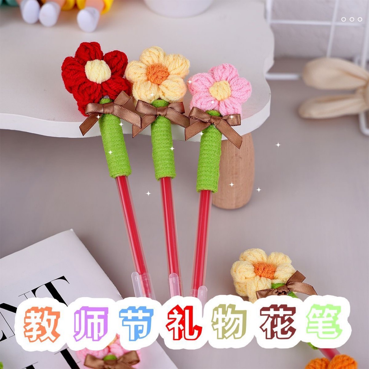 2025新款教师节礼物手工编织向日葵永生花束笔幼儿园小学生伴手礼