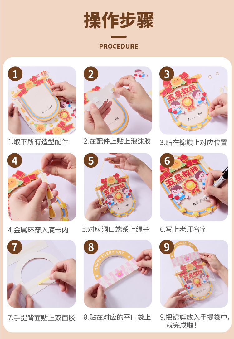 2025教师节礼物手工diy锦旗贺卡儿童制作材料包幼儿园送老师批发