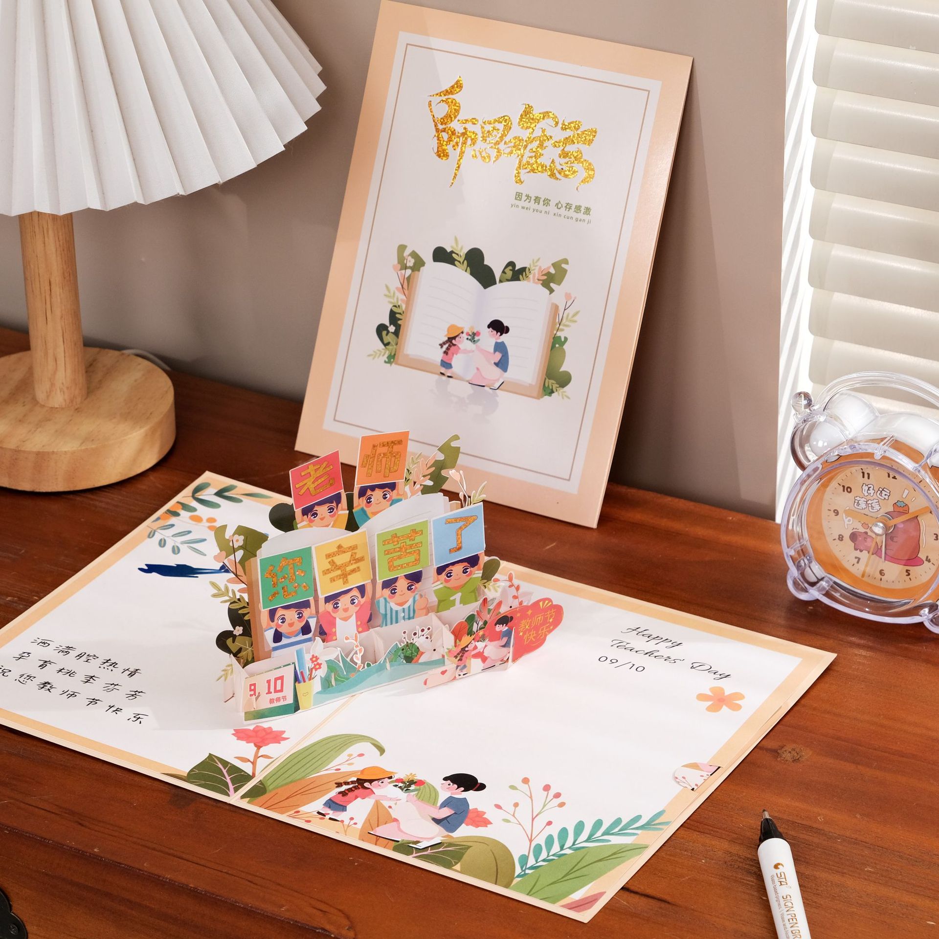 2025年新款书本式感恩教师节贺卡高级感实用礼物手工立体手写贺卡