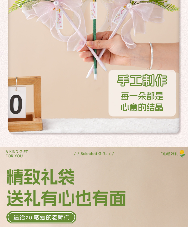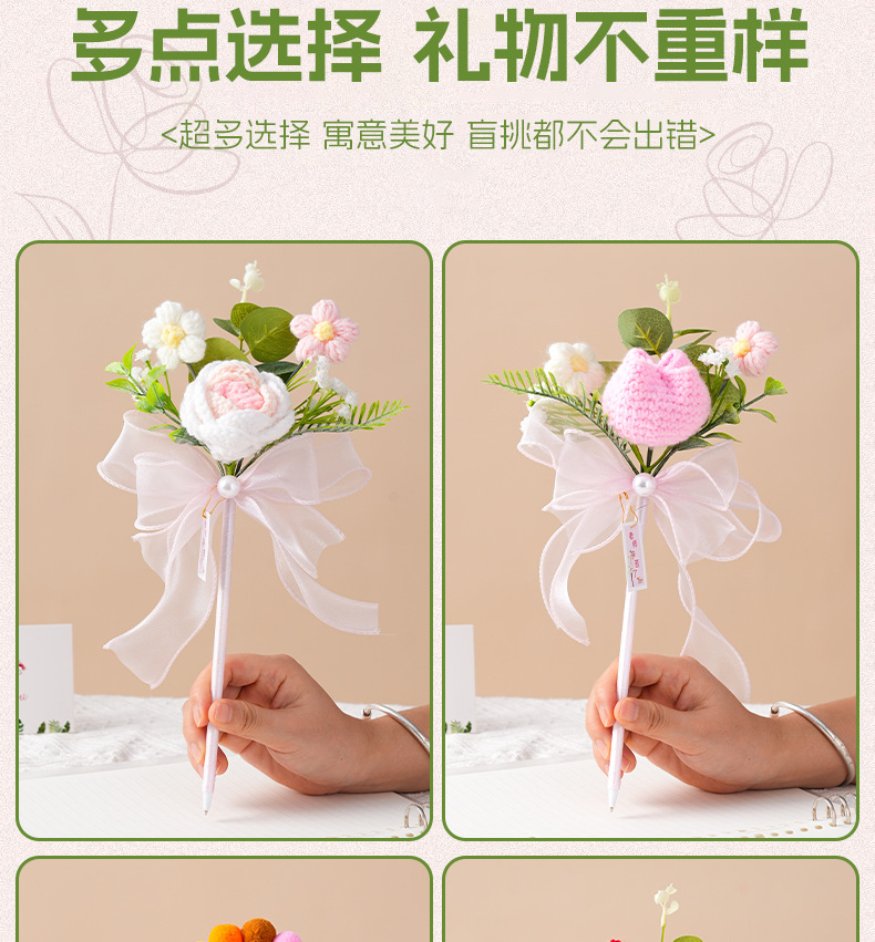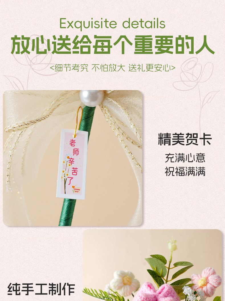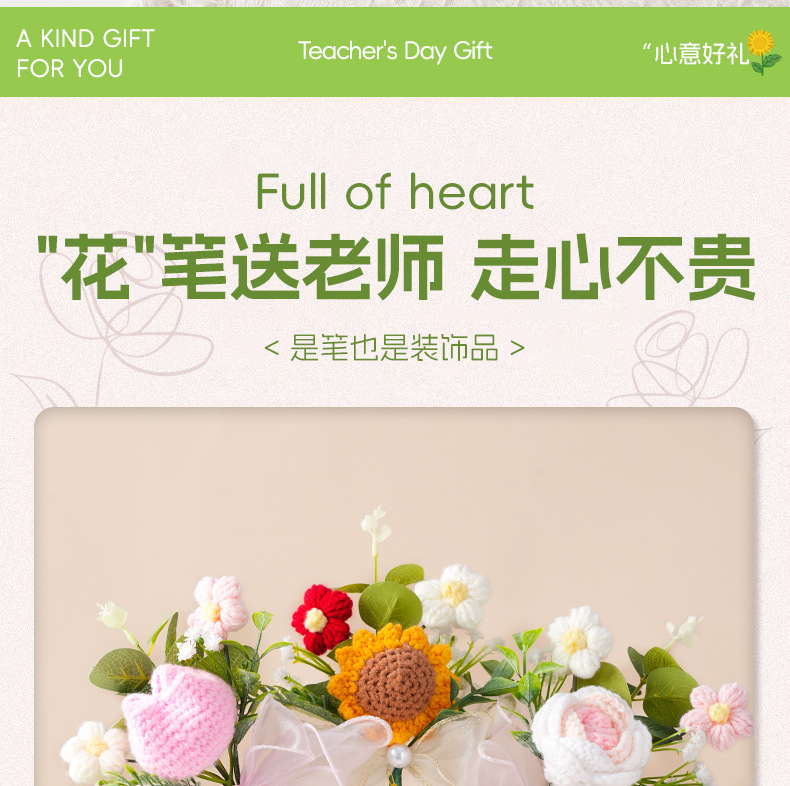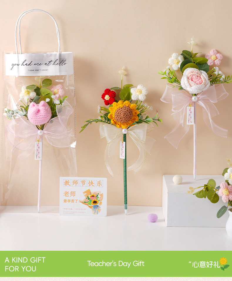 教师节礼物儿童学生送老师2025新款高档实用永生花针织花束笔礼品
