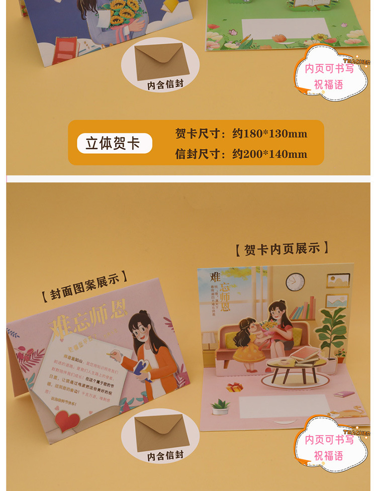 2025新款教师节3D立体贺卡儿童幼儿园送女男老师礼物明信片小卡片