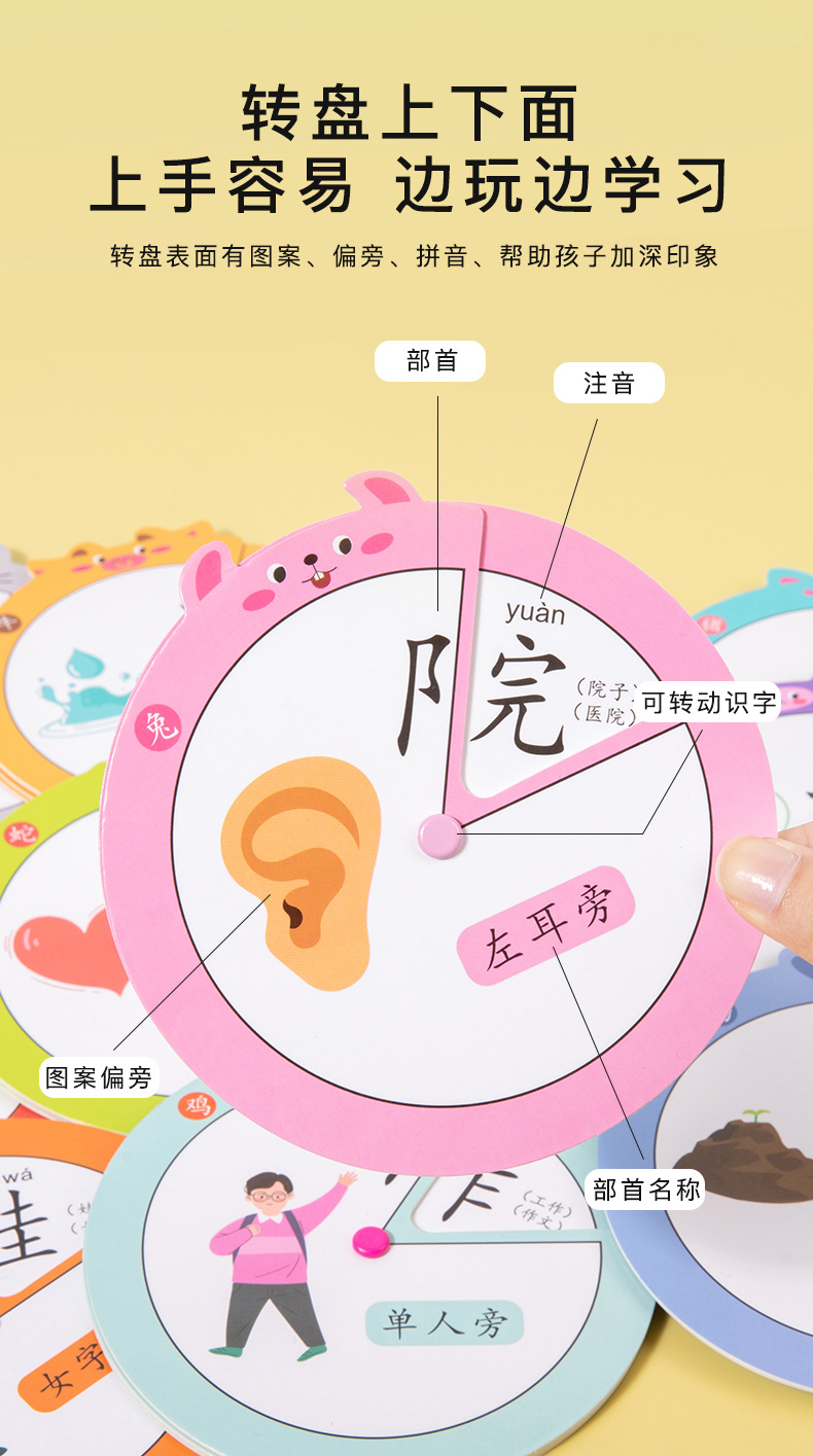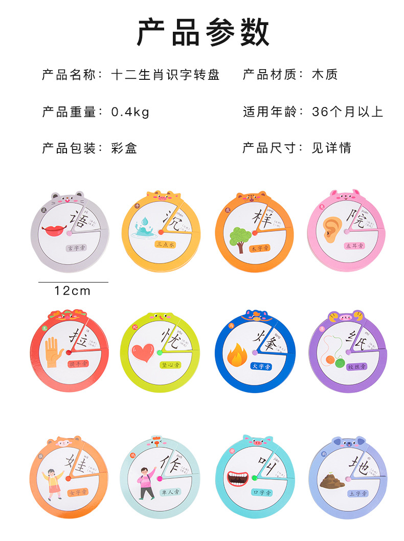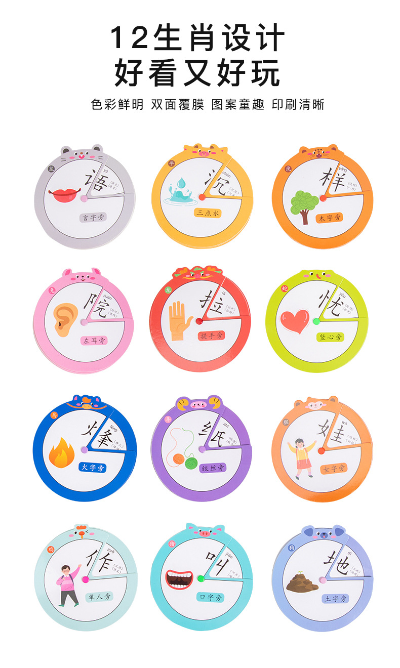 十二生肖识字转盘幼小衔接偏旁部首识字幼儿园学前早教益智类玩具