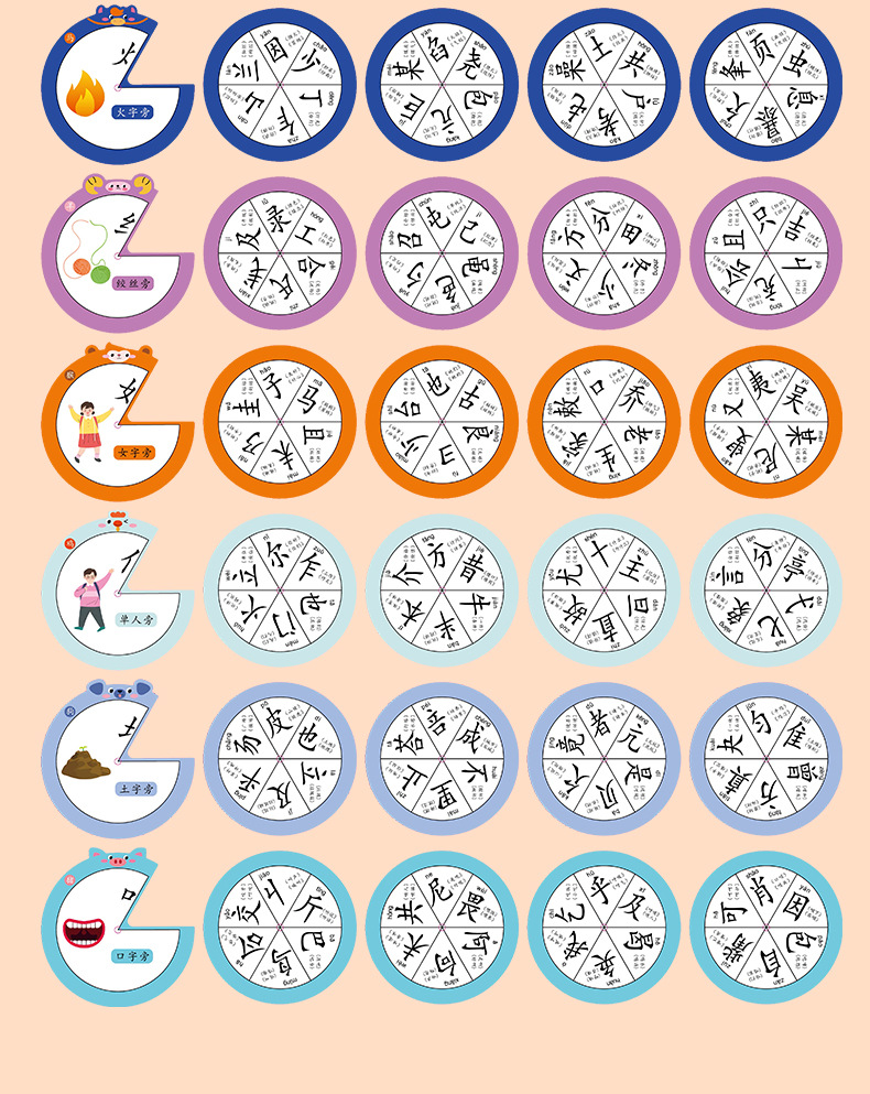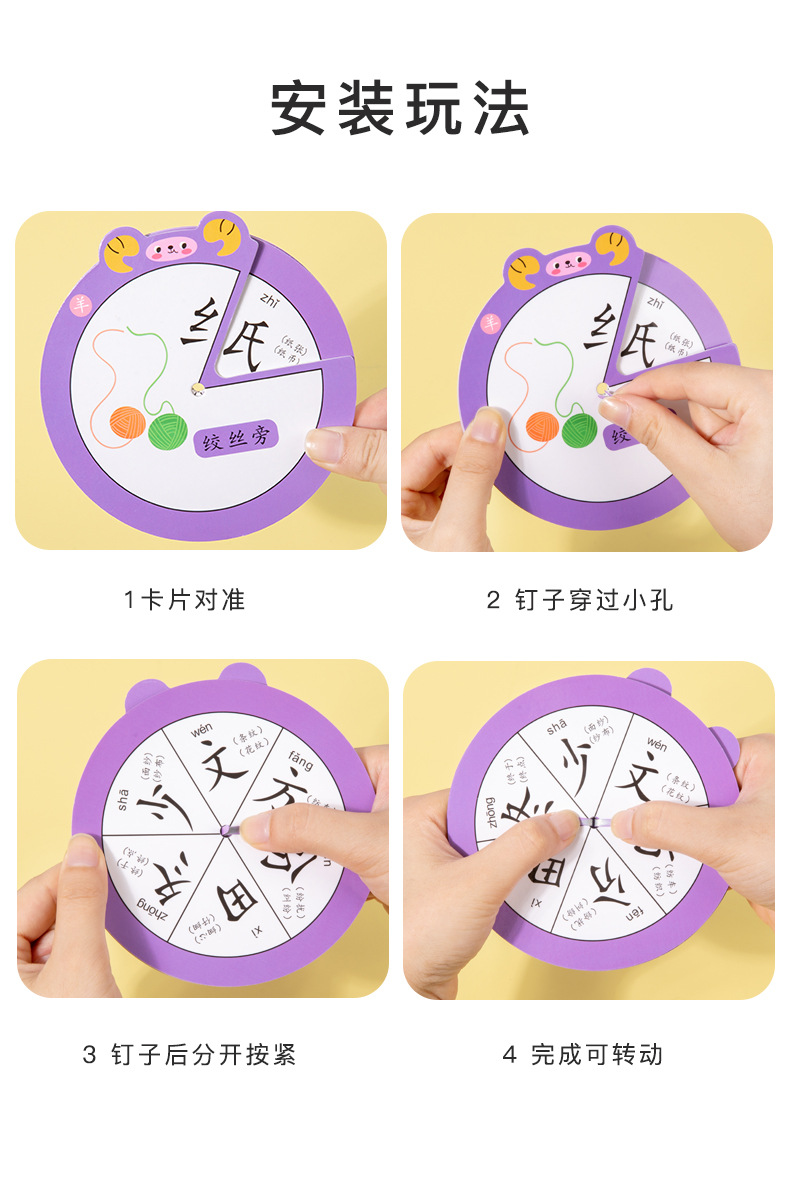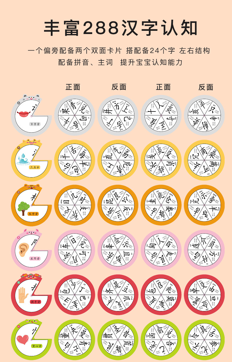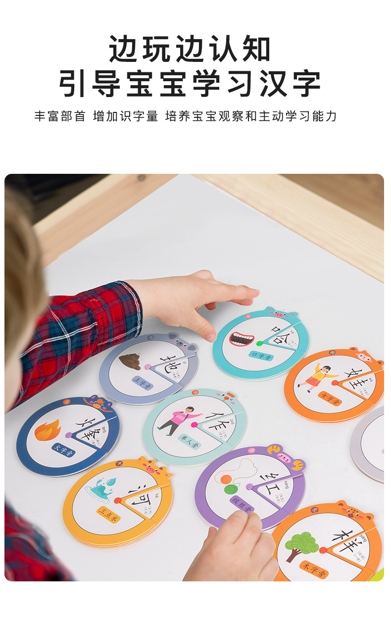 十二生肖识字转盘幼小衔接偏旁部首识字幼儿园学前早教益智类玩具