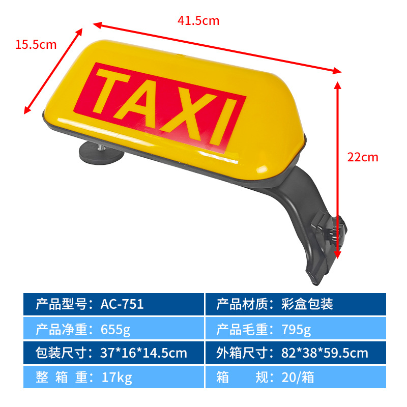 汽车用品跨境防水的士车顶灯12vtaxicarfu顶灯跨境出租灯可定LOGO