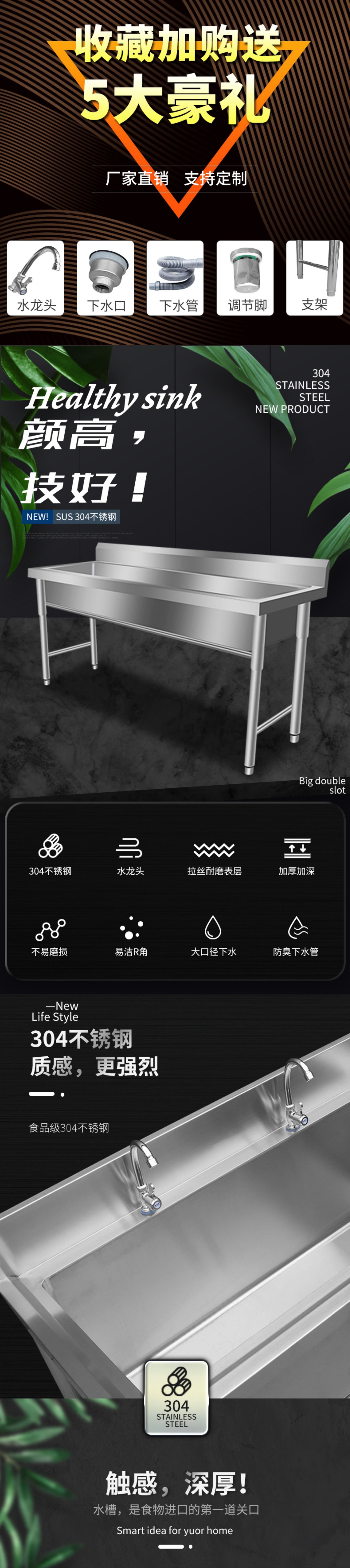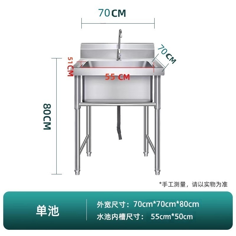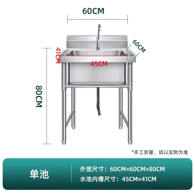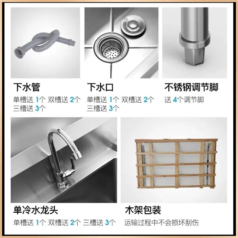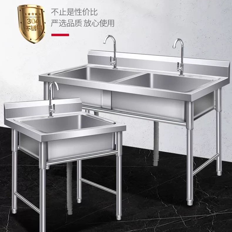 加厚304商用不锈钢水槽单双三池带支架洗手槽洗碗池厨房食堂专用