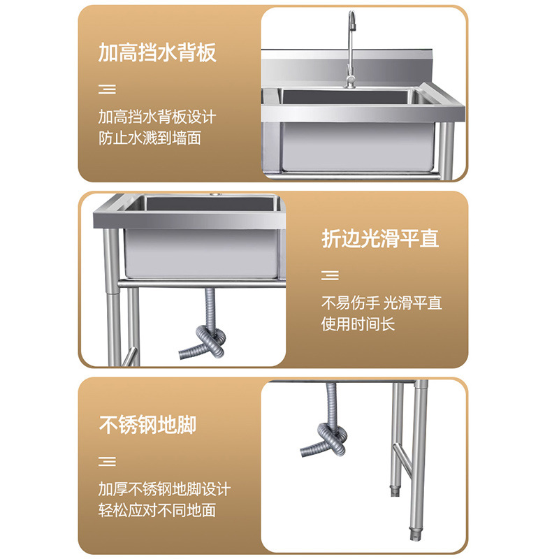 商用不锈钢水槽单双三槽学校洗手池厨房水池食堂洗碗洗菜消毒家用