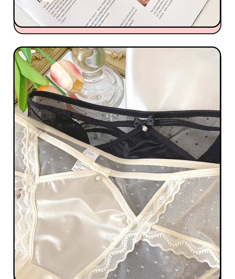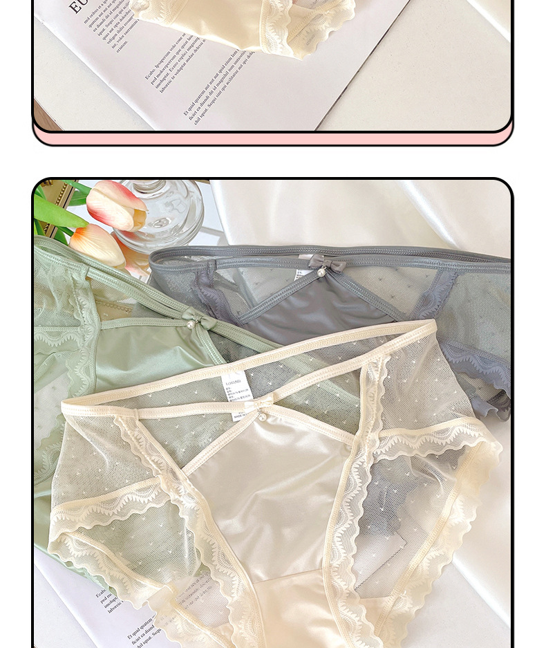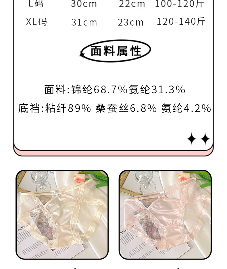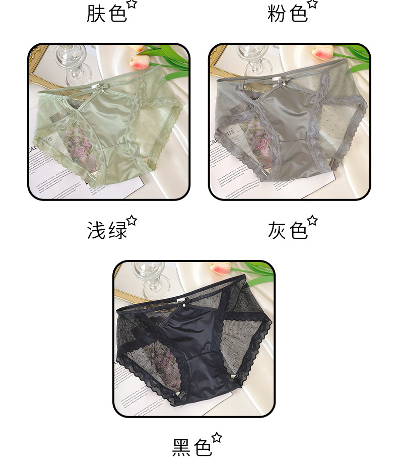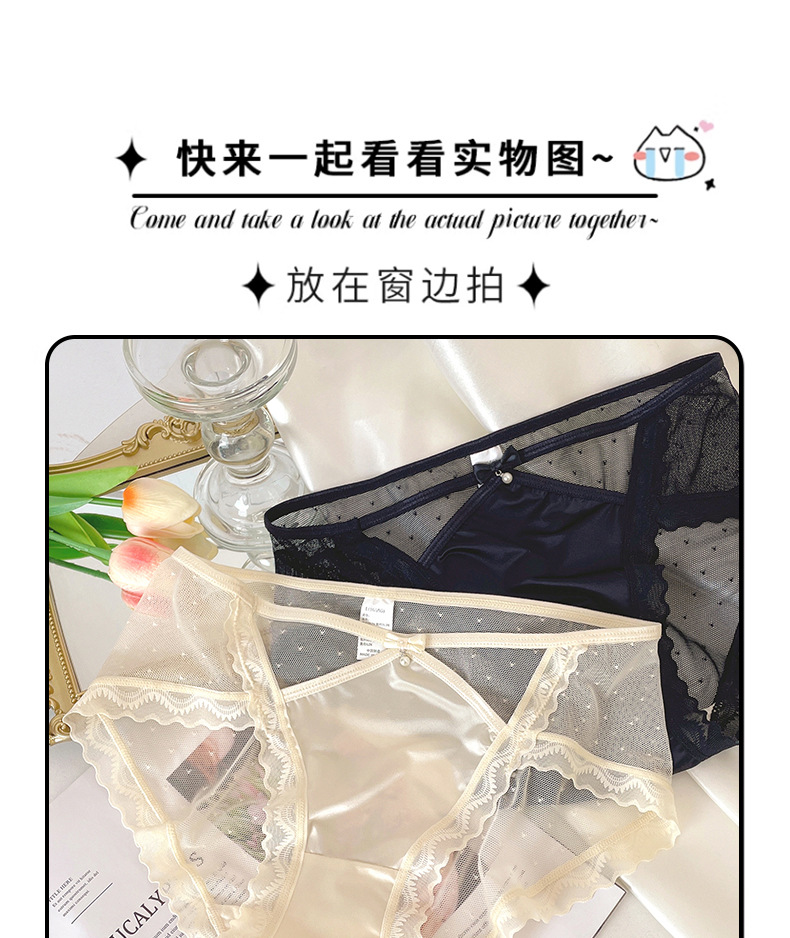 新款性感蕾丝中腰女士内裤纯欲半透网纱甜美镂空腰边女士三角裤