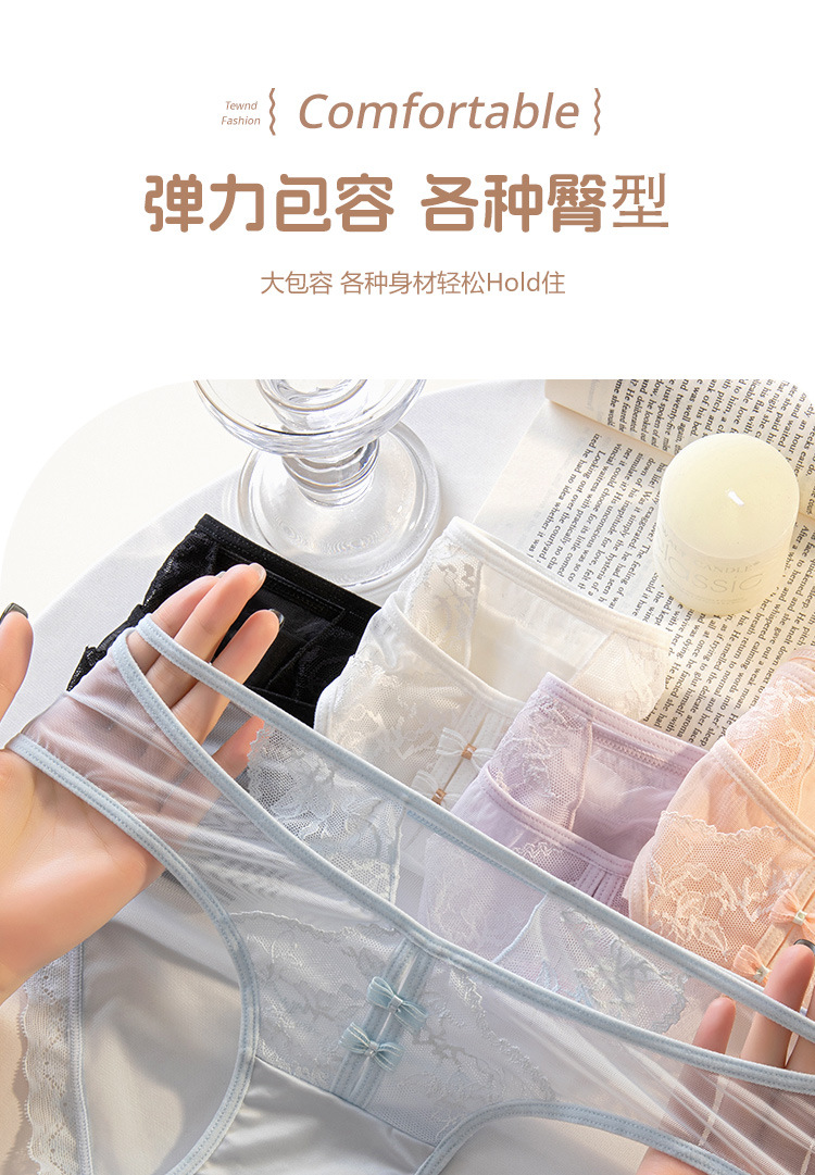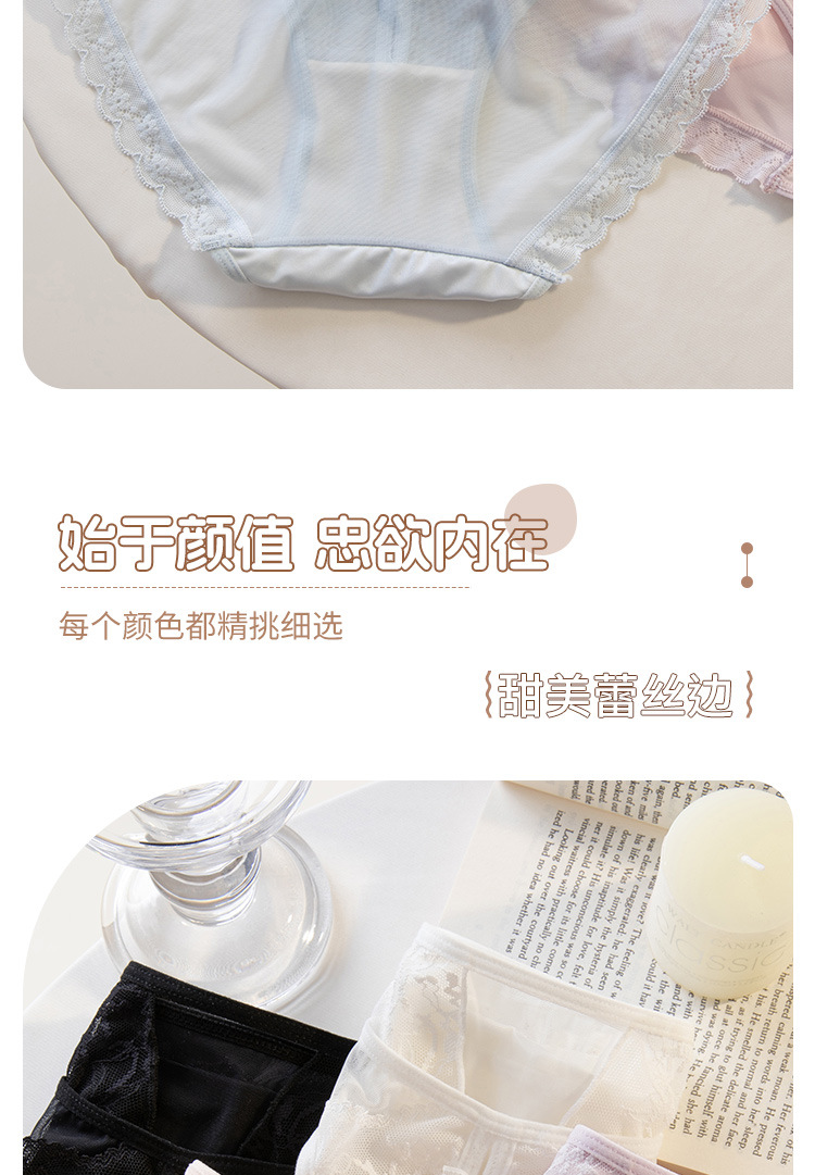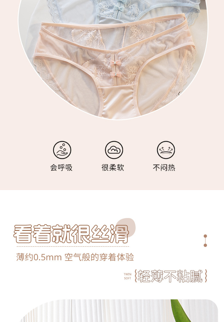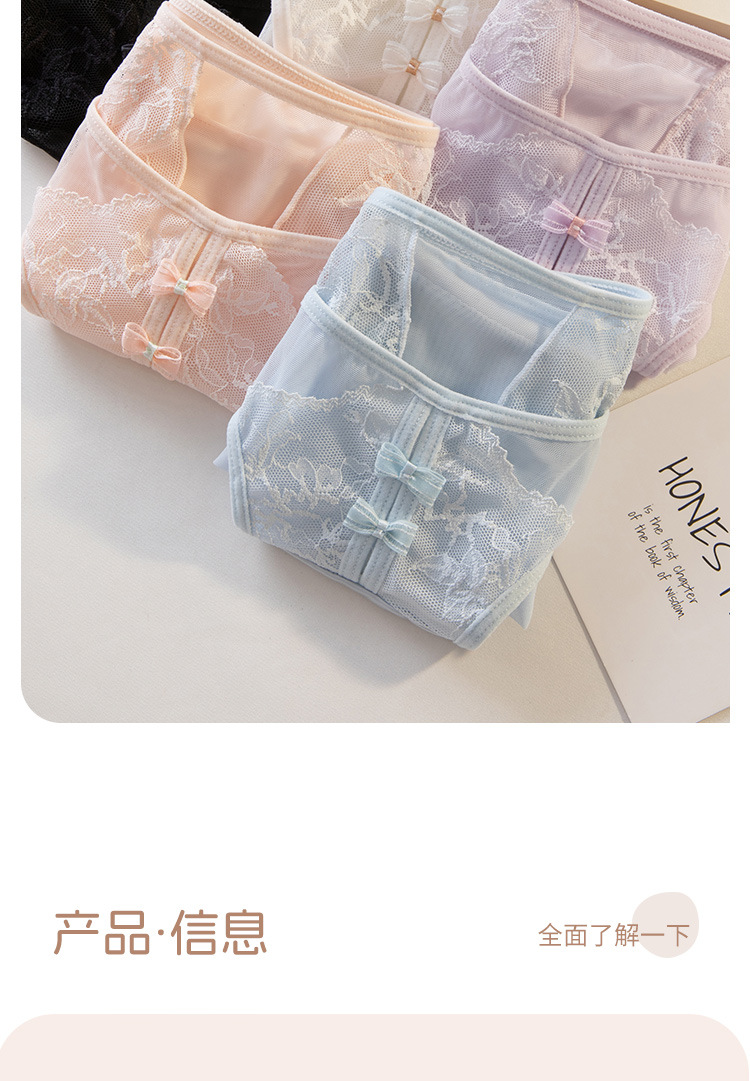 新款国风蕾丝女纯欲性感高弹舒适内裆中腰三角裤女拼接少女内裤